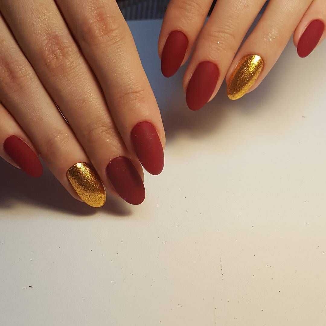 Матовый маникюр с золотыми цветами