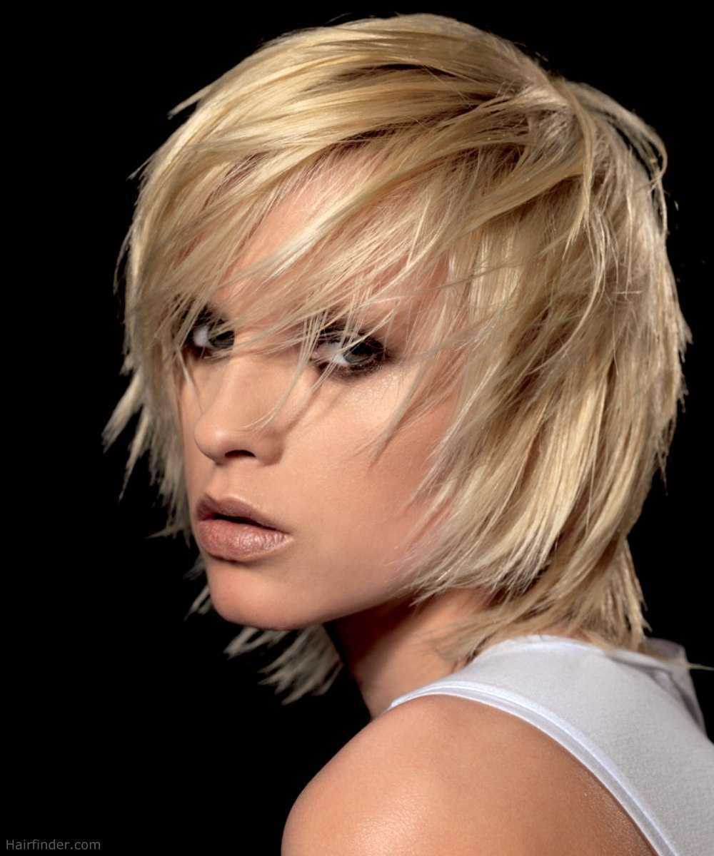 Она выгодно подает длину, практична и совершенно не вызывает затруднений при укладке. Как правило, стрижка каскад на короткие волосы выполняется по типу каре, разница лишь в том, что в данной стрижке вместо ровного среза идет «стрижка лесенка». В конечном счете, стрижка каскад (фото чуть ниже статьи) получается естественной, где удлиненные локоны красиво обрамляют лицо. Длина и резкость перехода локонов может варьироваться и зависит от желаемого результата. Ведь такая стрижка на короткие волосы может придать дополнительного объема волосам или решить проблему непослушных прядей. Короткие волосы эффектно смотрятся с рваным эффектом.