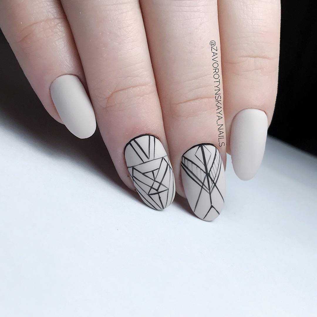 Различные геометрические рисунки на ноготках все также не теряют свою актуальность и в этом году. Четкие линии, различные фигуры, зигзаги и другие варианты – отличное решение для тех, кто любит минимализм в дизайне ногтей. Но все же такой дизайн все чаще комбинируют с цветным покрытием. Смотрится это не менее привлекательно. Также многие нейл-мастера предлагают дополнять геометрический дизайн блестками. Безусловно, такое сочетание весьма необычное. Однако модницы быстро оценили такой подход в оформлении маникюра.