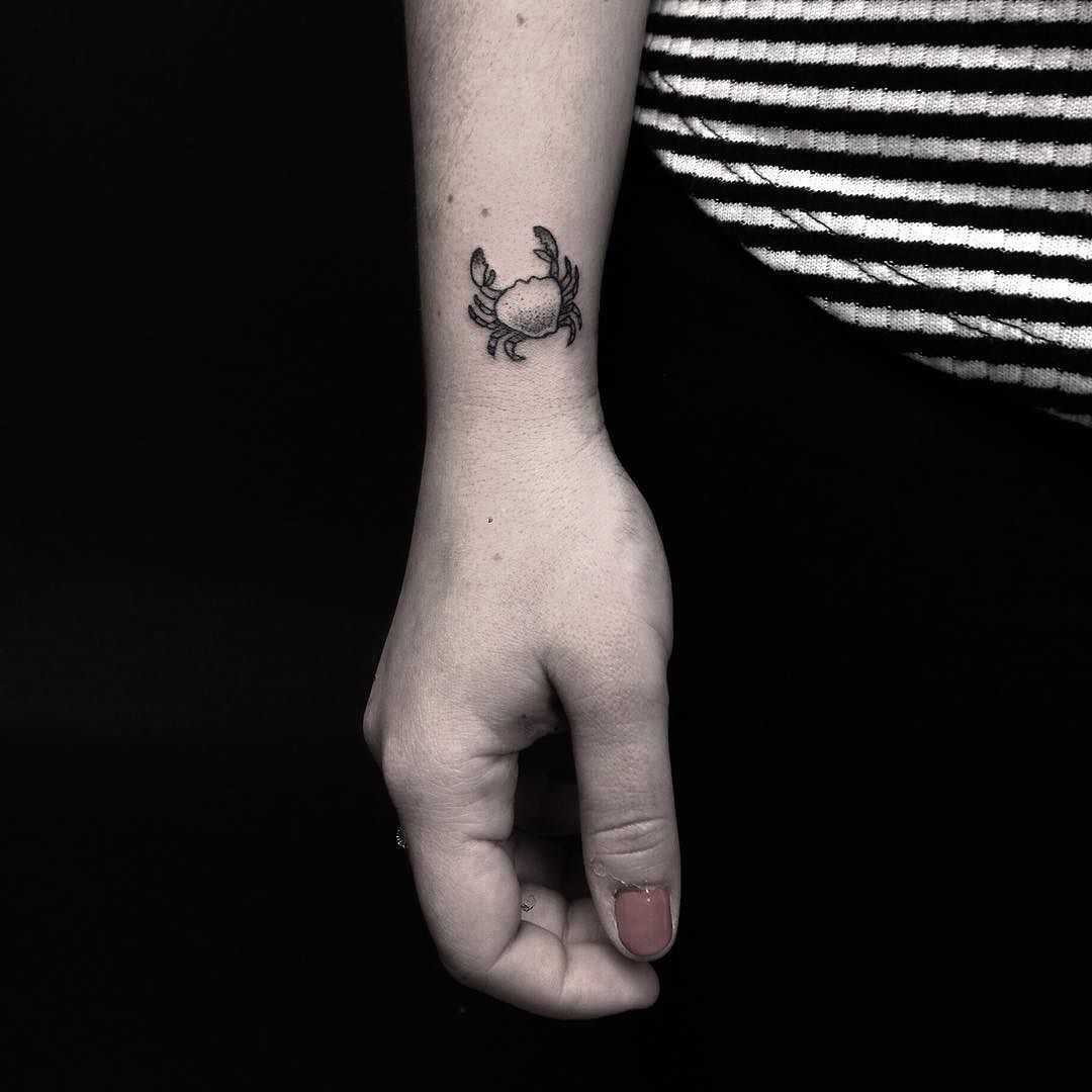 Молодые люди с тату Рак обладают необычайной мудростью и развитым интеллектом. Это приземленные люди, которые верят в практический подход. В жизни Раки очень спокойны и рассудительны, они редко применяют физическую силу для решения проблем. Они воспринимают «махание кулаками» как признак низкого духовного развития.