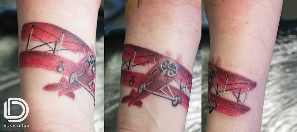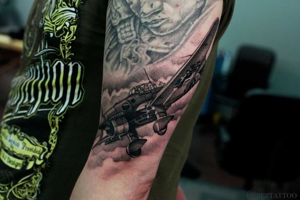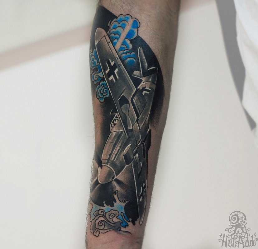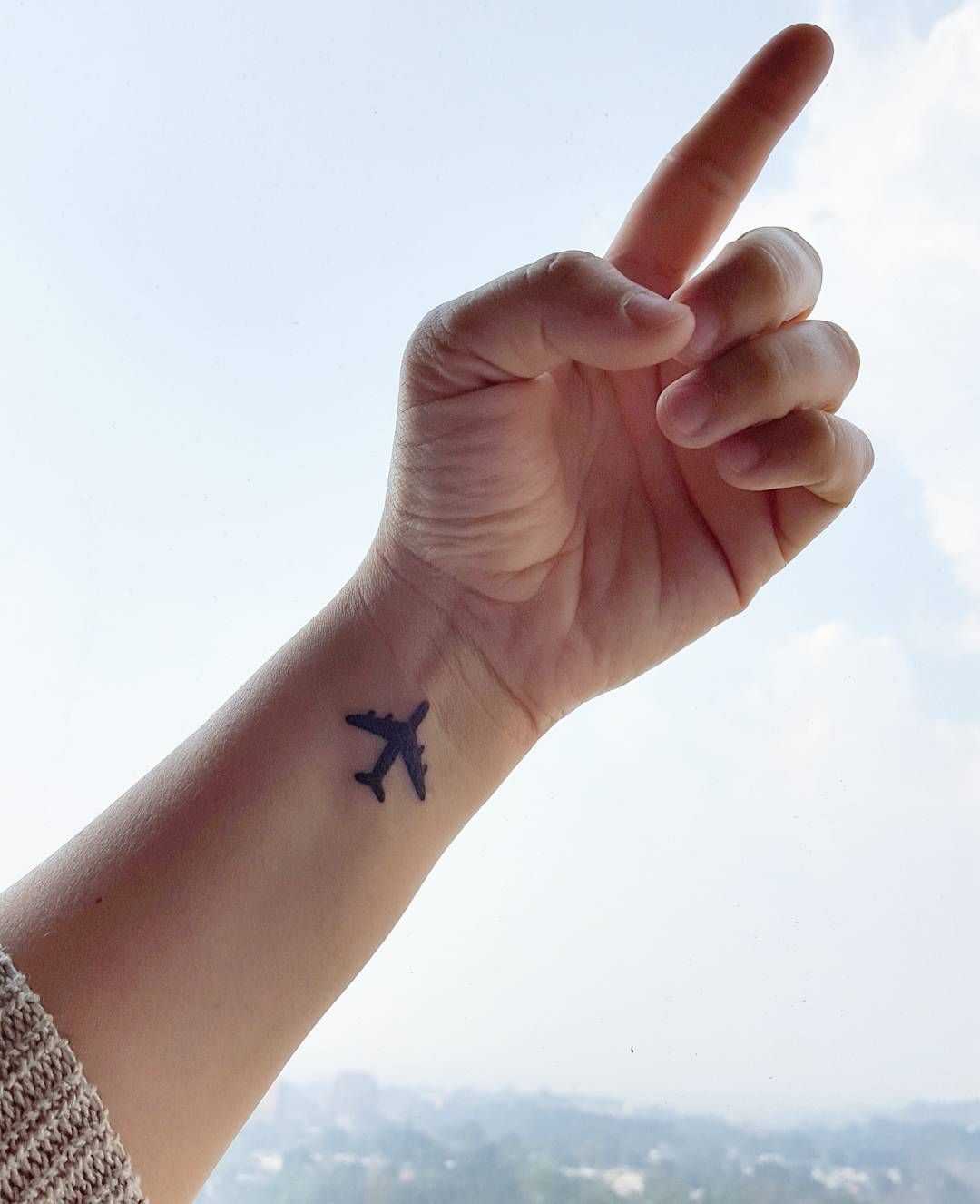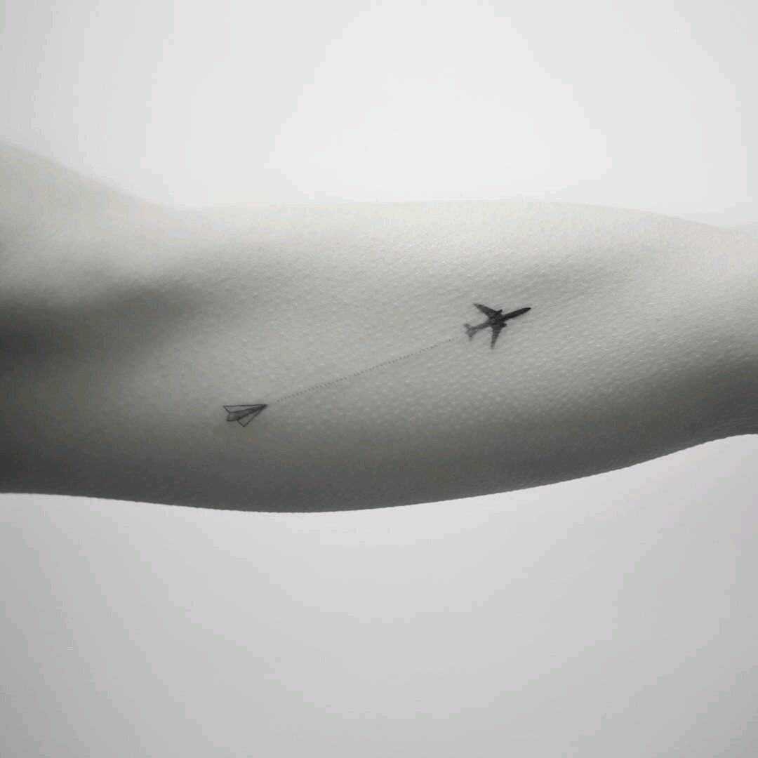 Изображение самолёта в нательной живописи относится к разряду интересных и достаточно органичных символов, которые по сравнению со многими другими идеями стали украшать тела любителей подобного вида искусства сравнительно недавно. Не смотря на простоту и определённую целенаправленность, эти эскизы многогранны в своём значении. Популярность подобных татуировок постепенно растёт, ведь как поётся в известной песне – первым делом, первым делом самолёты…