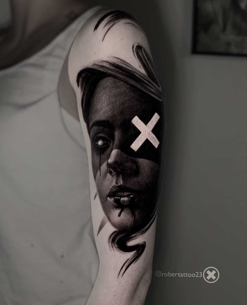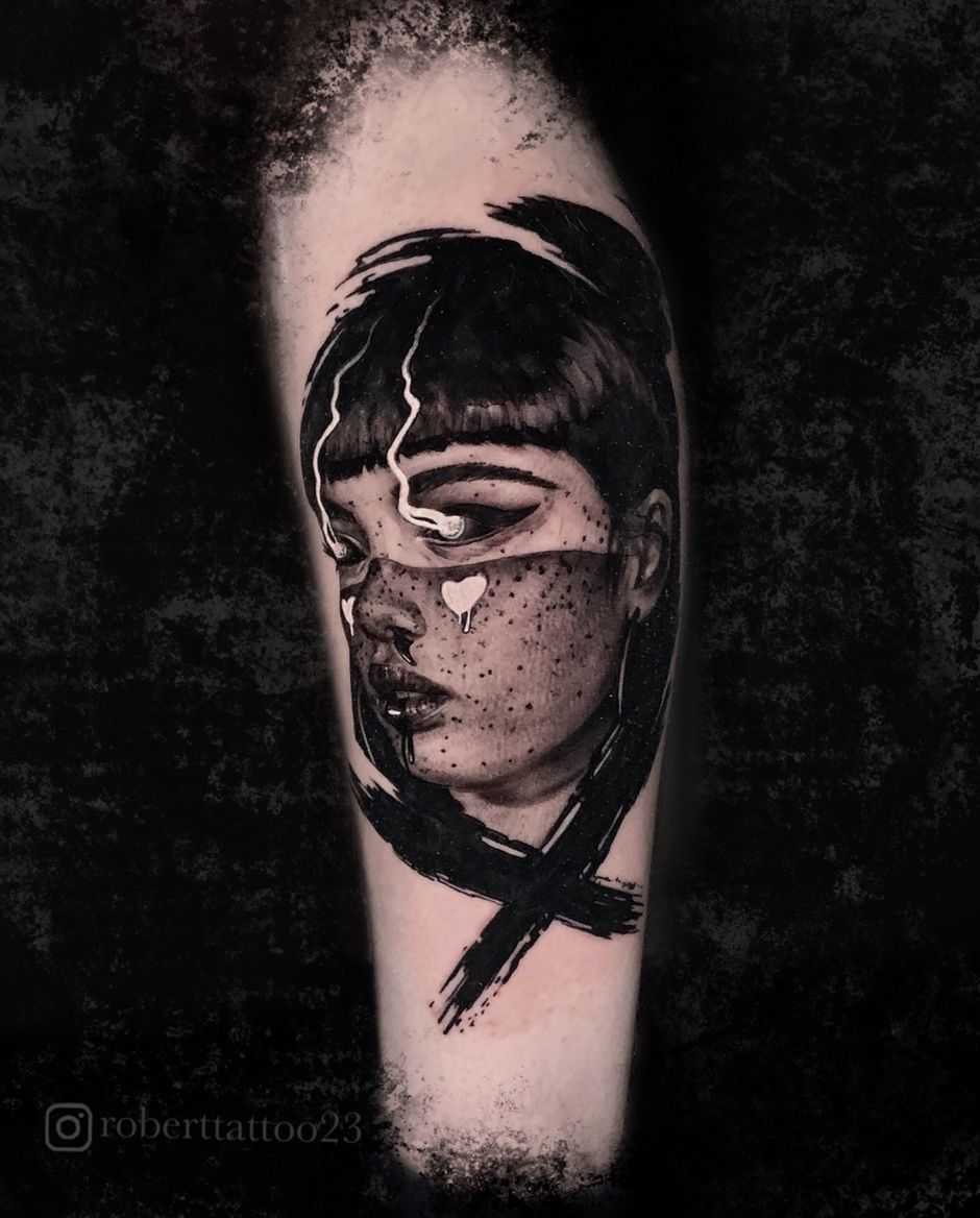 Мистичные тату с черным эскизом набивают в стиле Блэкворк. В этой технике хорошо смотрятся такие отрицательные персонажи как Итати Утиха и Рюк. Часто поклонники аниме наносят на свою кожу портреты близких людей или друзей, выполненные в традициях японской анимации, таким образом подчёркивая собственную приверженность к этому виду искусства.