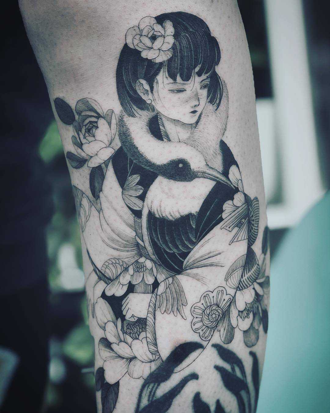 Главные герои «Унесенные призраками» очень распространены в качестве тату: Хаку и Тихиро, как правило, изображающиеся совместно.