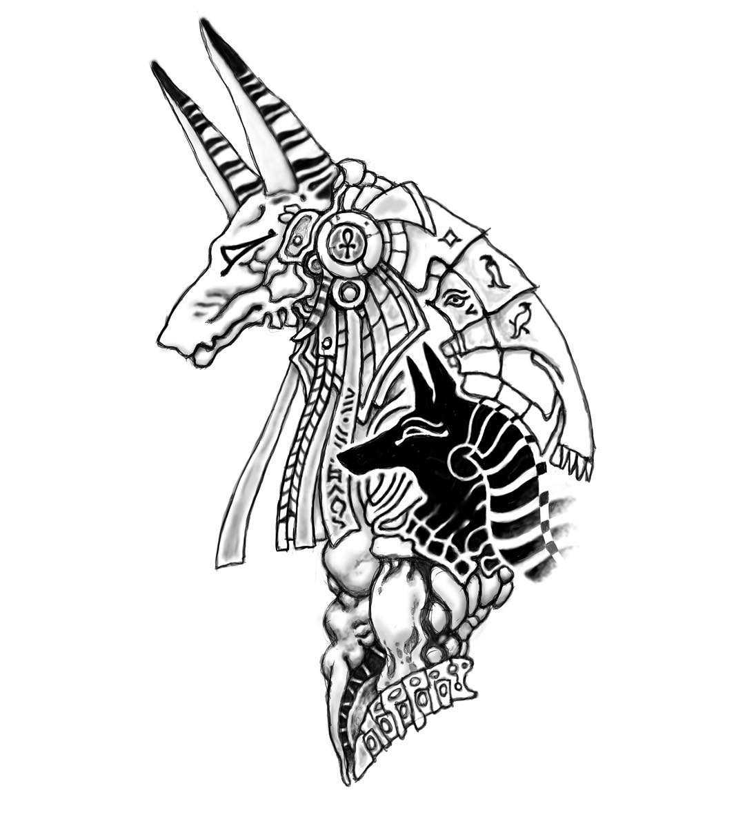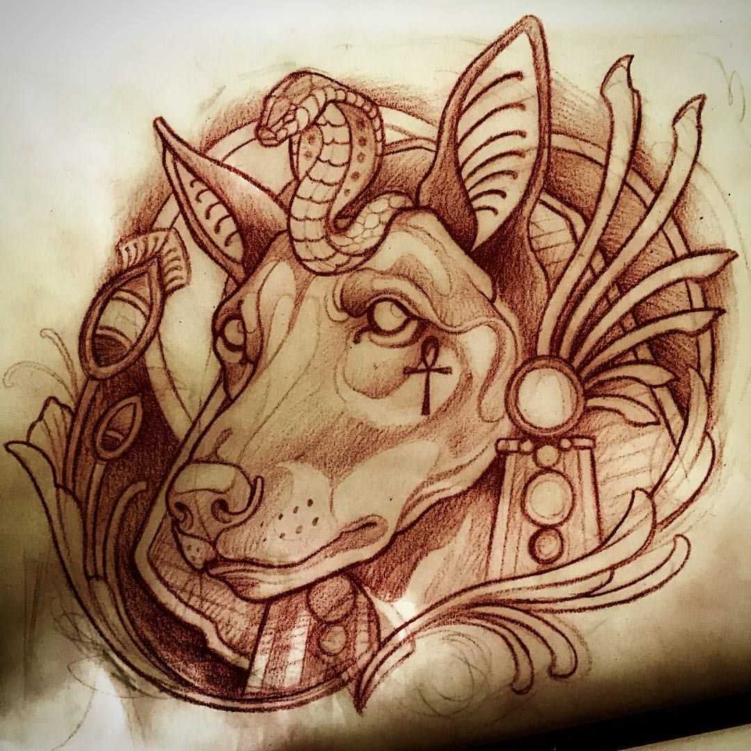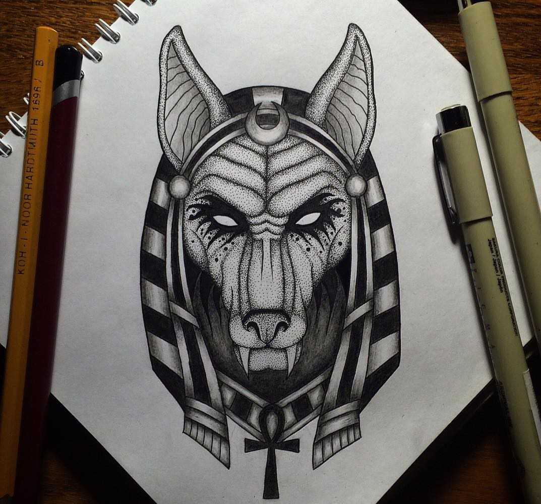 Перед тем как делать татуировку, стоит ознакомиться с эскизами анубис тату фото. Дополнительные элементы сделают картинку ярче и интереснее, вложат в рисунок более глубокий смысл. ТОП лучших вариантов эскизов: