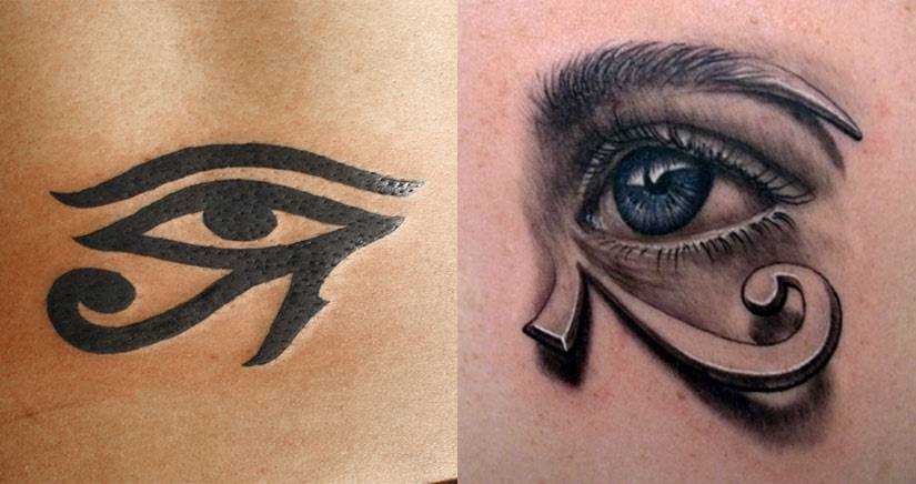 Огромным успехом пользуется тату египетский глаз. Его называют глазом Гора. С точки зрения мифологии древнего Египта, этот символ, называемый уаджет – левое око Гора, потерянное в схватке с другим божеством – Сетом. Он символизирует Луну. Божество Тот исцелило Гора, и с тех пор его глаз превратился в своеобразный амулет. Интересно, что он был разрешен для всех сословий, от бедняков, до самих фараонов. Вера в силу божественной защиты сохраняется в некоторых общинах мира до сих пор.