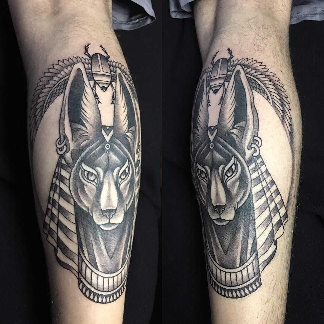Изображения на татуировке Анубиса лучше делать в крупном размере. Места, самые подходящие для тату, – руки, икры, спина. Все зависит от профессионализма тату-мастера и вашей фантазии.