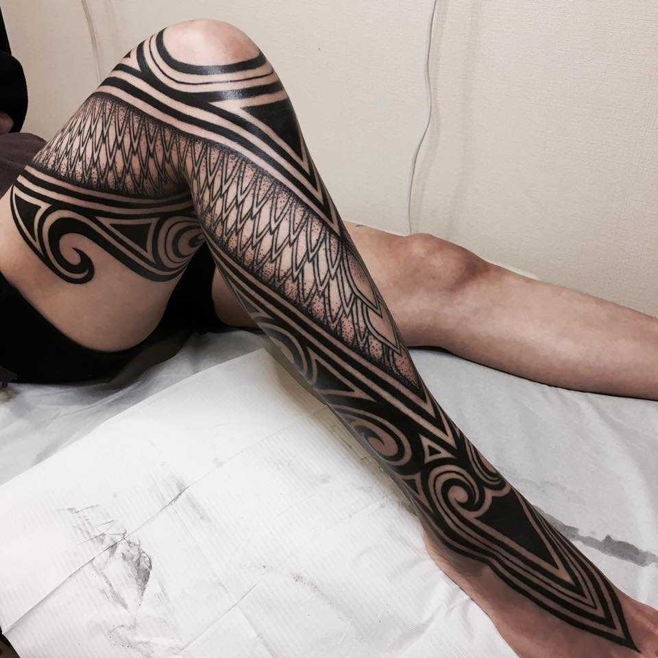 Некоторые классические рисунки blackwork перекликаются мотивами с полинезийским стилем. Они схожи за счет своей тематики и техники. Такие работы занимают довольно много времени, из-за своей сложной геометрической структуры. Поэтому сразу рассчитывайте время, чтобы не торопить мастера. Есть много специалистов, которые концентрируют свою работу именно в этой области. Достаточно поискать в интернете и вы найдете немало подобных.