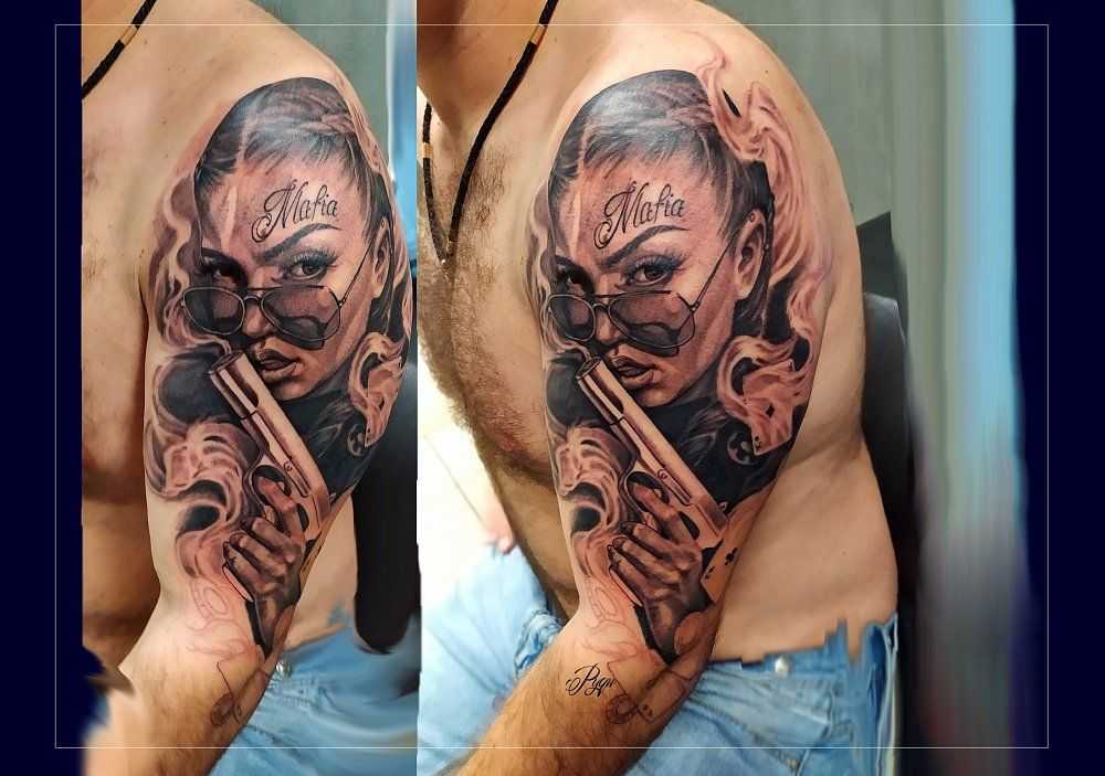 Трактовка тату с пистолетом во многом зависит от самого эскиза и личности хозяина. Символика этого рисунка в мужских и женских примерах тату также может отличаться.
