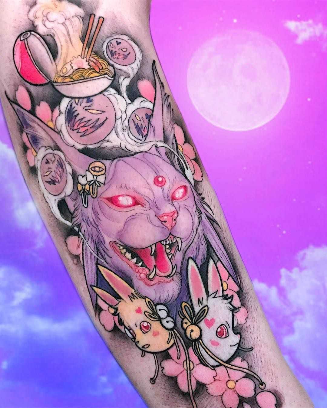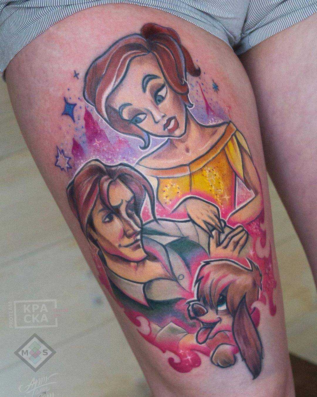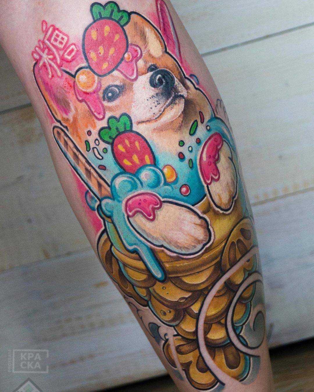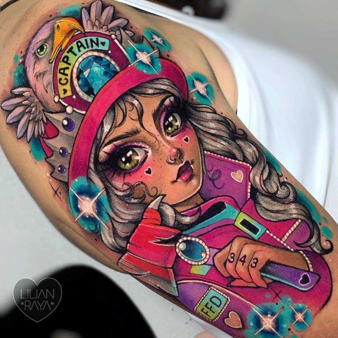 Ньюскул – это еще один потрясающий стиль для татуировок. Он отличается яркой палитрой и невероятными сочетаниями оттенков. Картинка оформлена широкими контурами. В результате получается оригинальный рисунок, передающий массу эмоций.