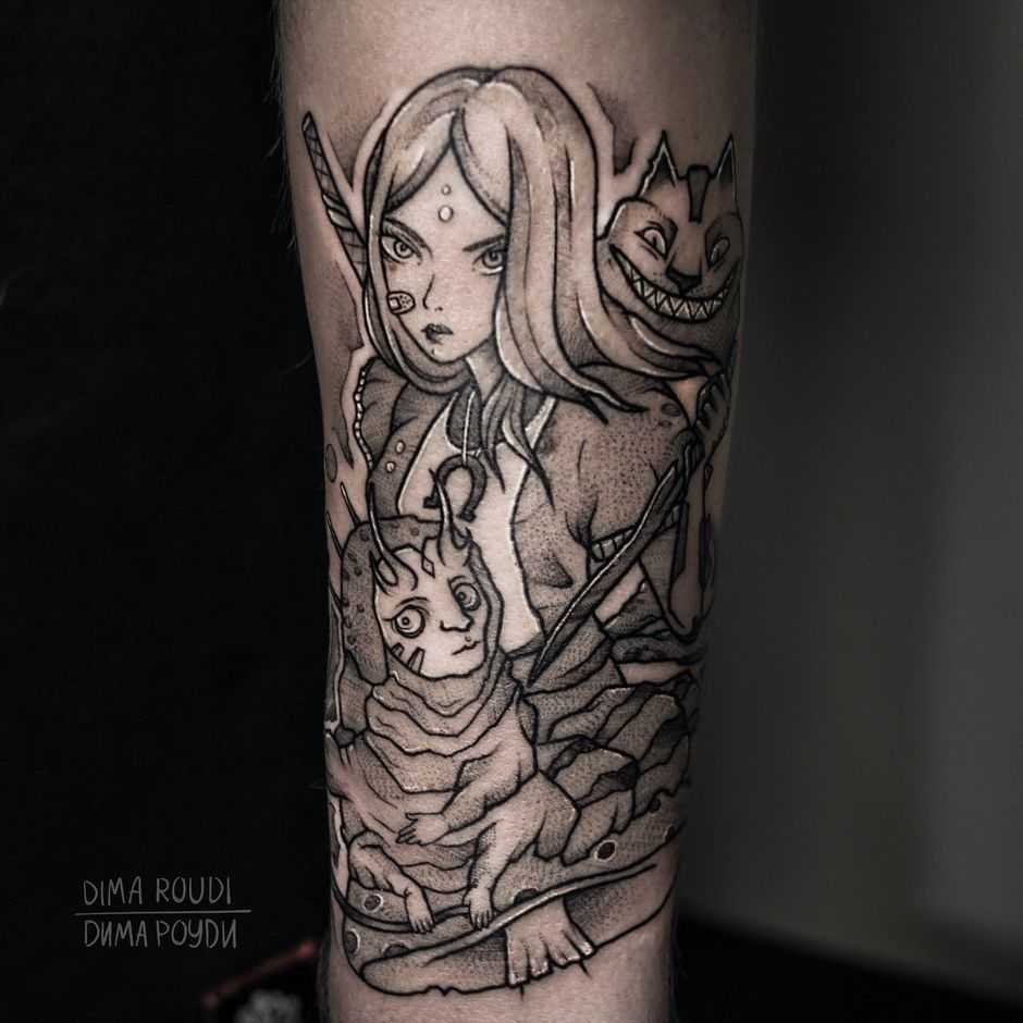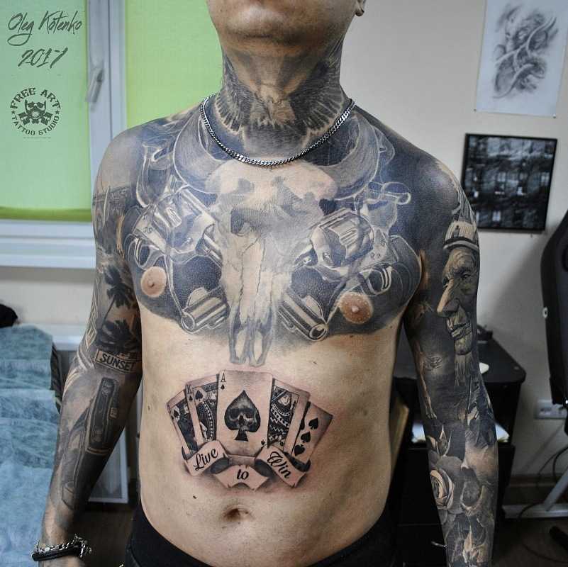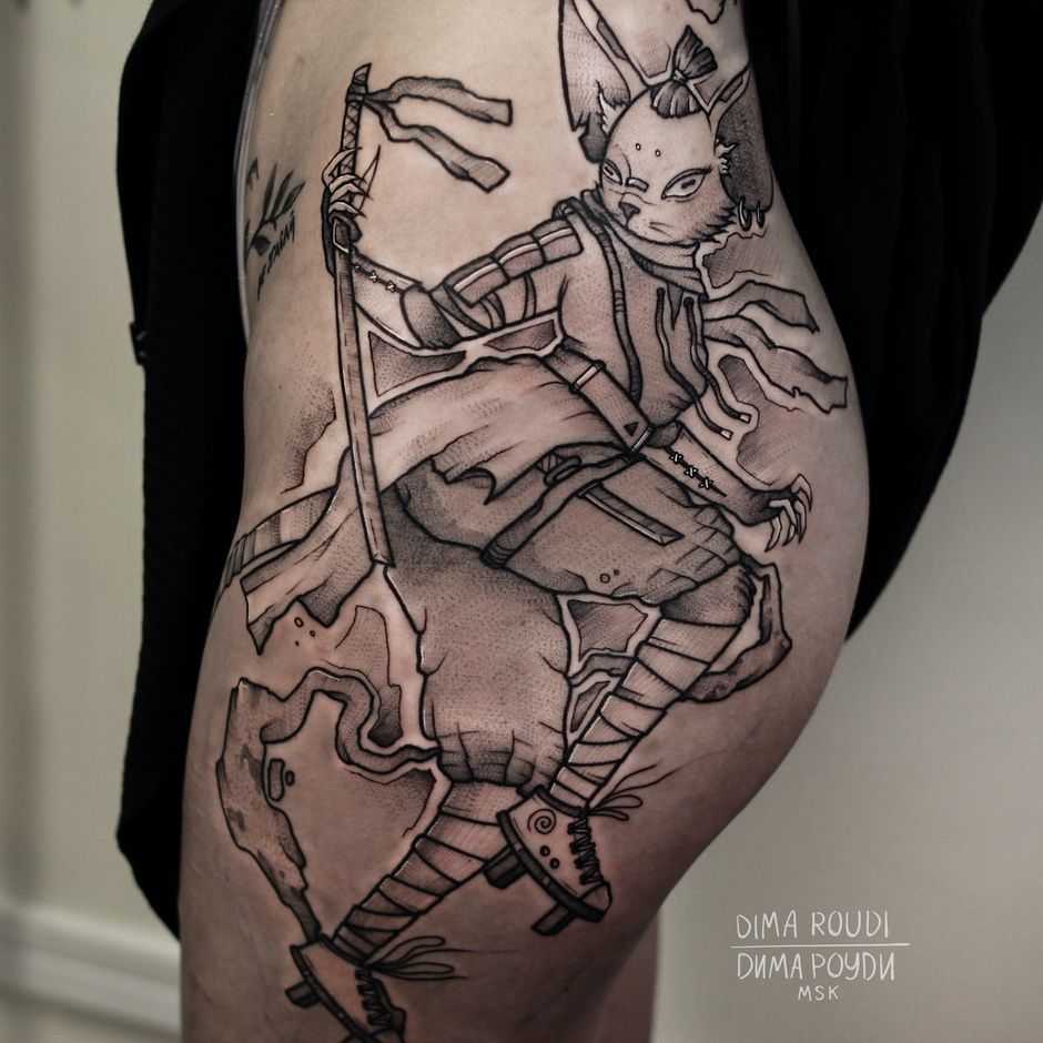 Важно, чтобы композиция несла целостность смысловой нагрузки. Самые яркие и запоминающиеся татуировки выполняются в бунтарском стиле резкими линиями