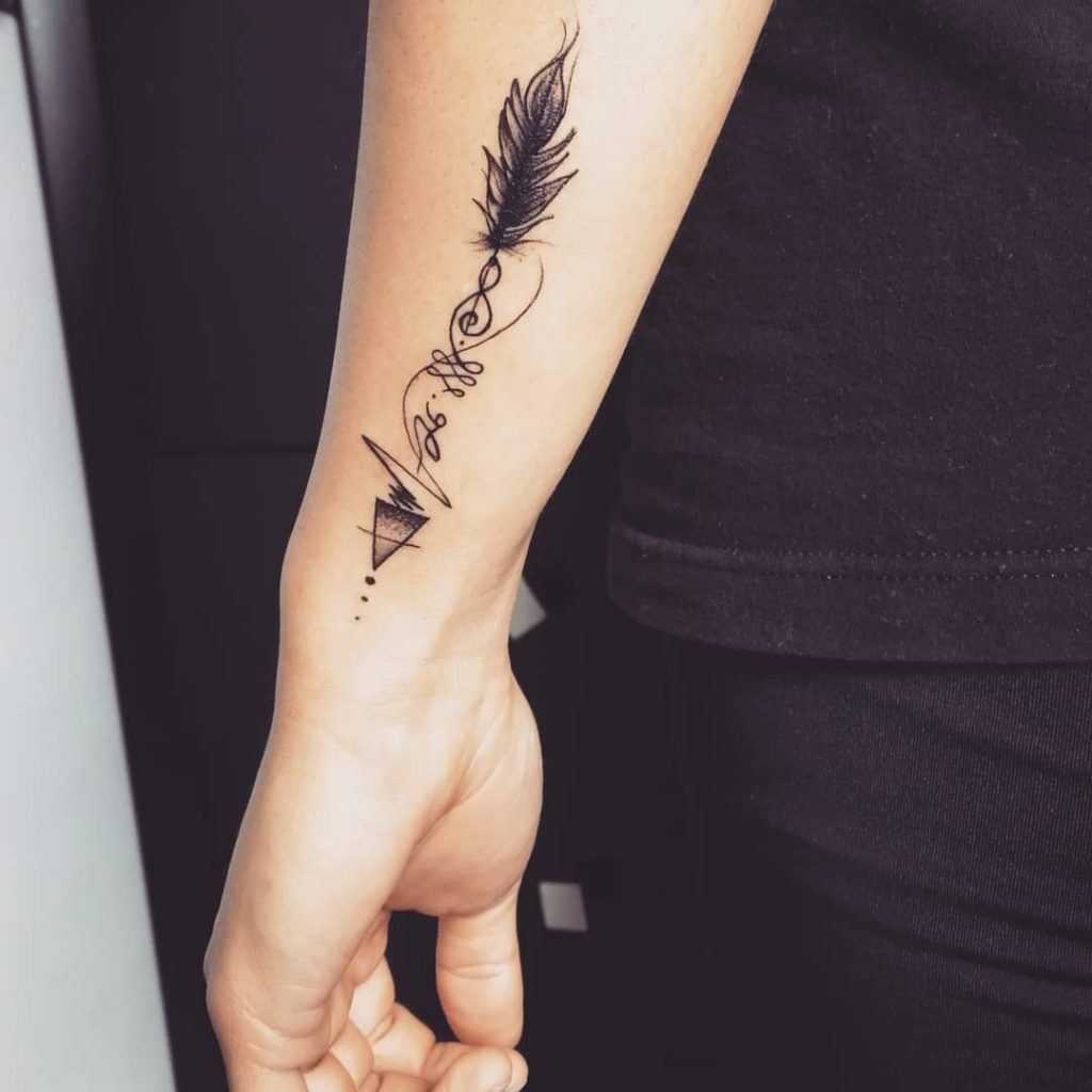 На этой части руки в основном помещают небольшие тату с изображением наконечника стрел вниз, к ладони. Выбор эскизов и воплощение вашей фантазии безгранично. Разнообразие значений татуировки стрела позволяет каждый эскиз наносить в неповторимой технике и подобранной в индивидуальном порядке стилистике.