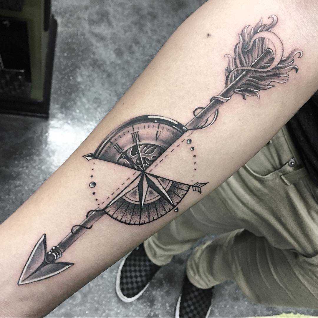 Рука считается одним из распространённых мест для нанесения тату стрелы. Эскиз в основном располагают на плече и предплечье. Небольшой рисунок удачно расположится на запястье.