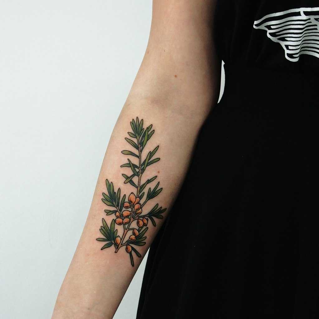 Расположение будущей татуировки зависит от нескольких нюансов, которые необходимо учитывать заранее. В первую очередь место на теле определяет эскиз и его размеры, так как большинство рисунков требует ровную горизонтальную поверхность и большую площадь. Поэтому идеальный вариант для больших композиций – это грудь, спины, плечо, ключица, предплечье или икры ног. Если же татуировка имеет небольшие размеры и выполнена в графическом стиле, то ее лучше расположить на шее или запястье. Не менее красиво смотрятся ветки на обеих лопатках, стилизованные под крылья.