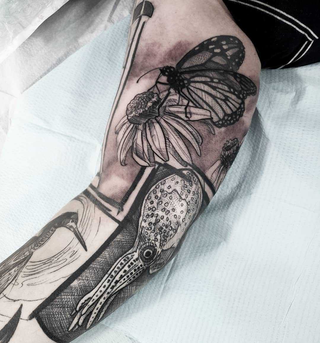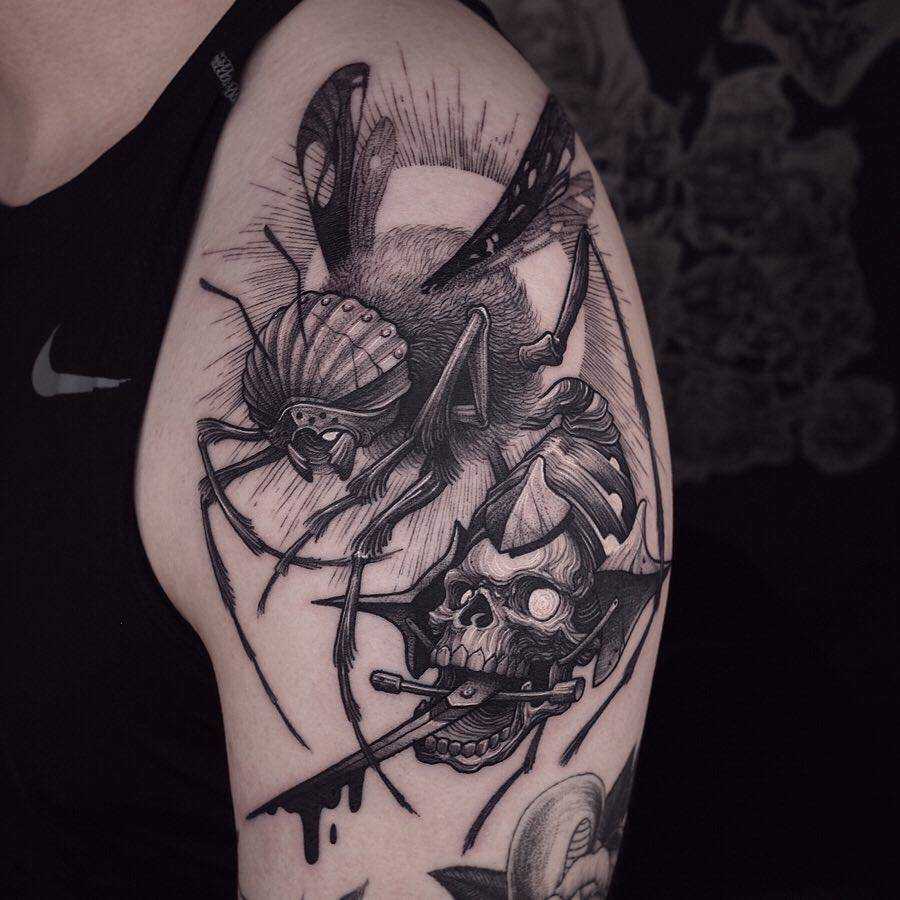 Татуировка в стиле графика выглядит довольно красиво и необычно. Выполнить в такой технике можно совершенно любую композицию. Самое главное – предварительно проработать графический эскиз и посоветоваться с профессиональным тату-мастером.
