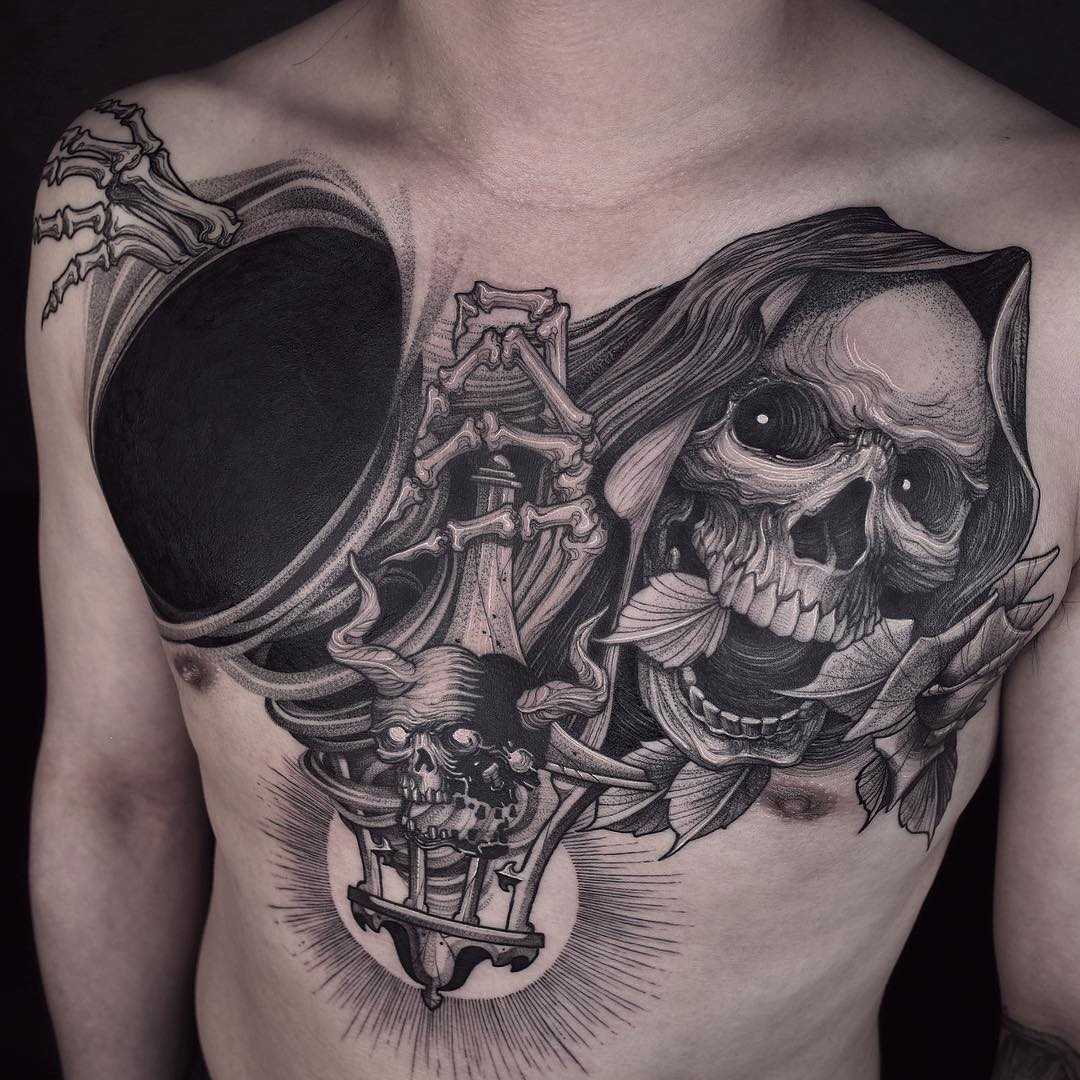 Еще один важный фактор – болевая чувствительность. Нужно понимать, что на создание больших композиций нужно не только много денег, но и времени. Если эскиз слишком сложный, то боль будет ощущаться на протяжении всего рабочего процесса, что не подходит для людей с низким болевым порогом. Лучше всего отдать предпочтение участкам тела, где отсутствуют костные выступы. Больнее всего будет делать тату на кистях рук, локтях, коленях, ключице и ребрах.