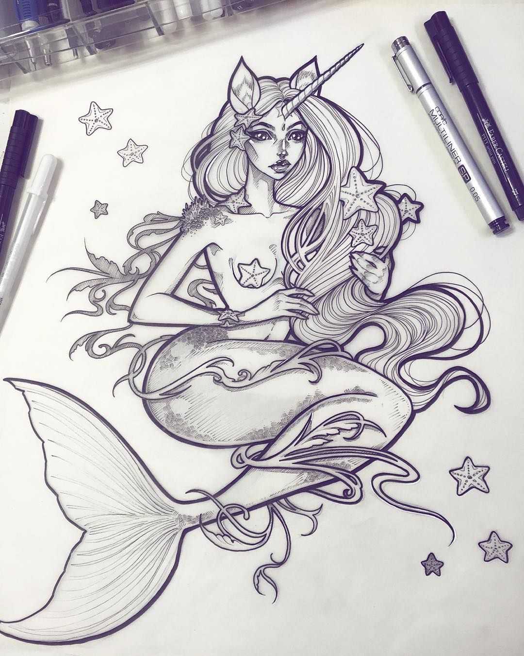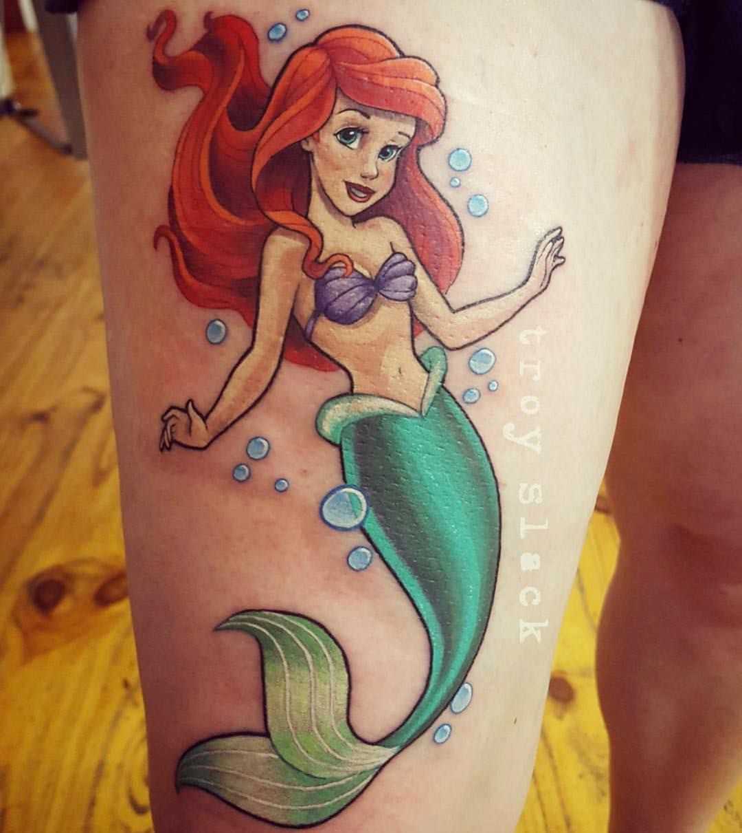 Немало внимания стоит уделить окружающим деталям и традиционной атрибутике. Морские пейзажи прекрасно смотрятся с якорями, компасами, кораблями, удивительными закатами и прибоями. Морские звёзды, раковины и камни также могут стать спутниками мифического создания. Для выполнения подобного рисунка применяется большинство стилей тату.