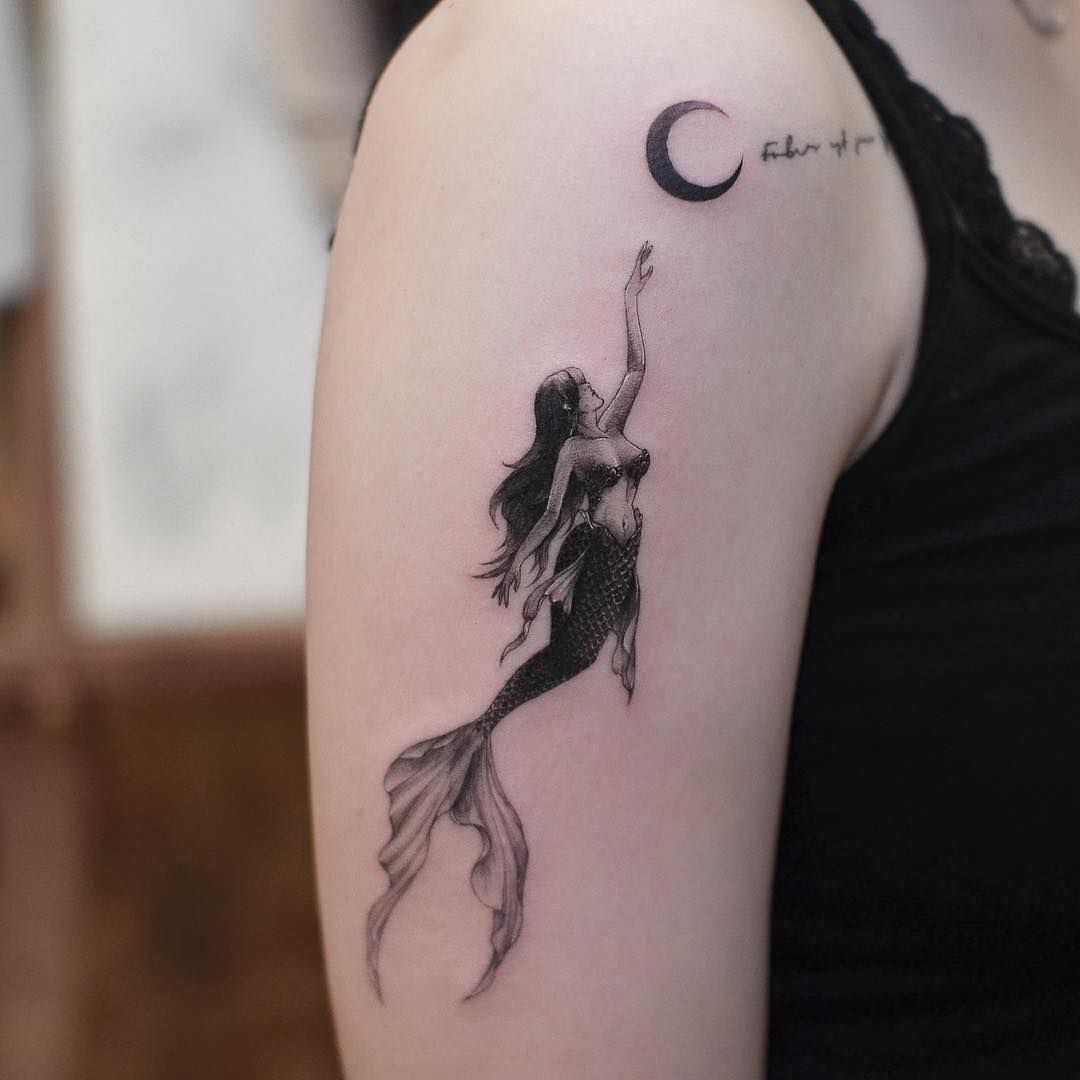 На сегодня образ русалки давно потерял свою опасность и мистичность. Такой эскиз идеально подходит свободолюбивым, мечтательным и слегка таинственным личностям. Обязательно проанализируйте все за и против перед походом в тату-салон, ведь такой рисунок остаётся с вами не на один день.