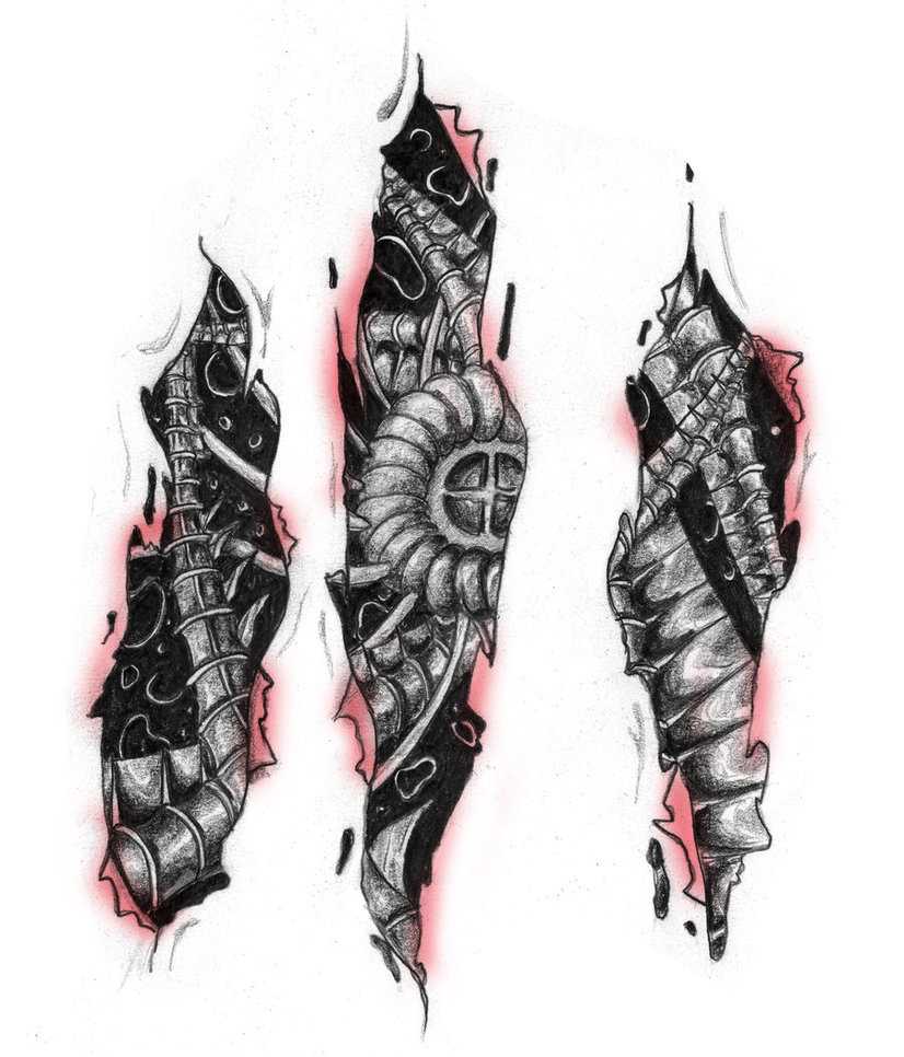 При выборе эскиза главное, что нужно сделать – найти хорошего и высококвалифицированного мастера, так как изящность и привлекательность татуировки зависит только от него. Что касается эскиза, то тут главное определить часть тела, которую заменит механизм и выбрать тип механизма. Например, пользуется спросом тату на икрах, где мышцы заменяют пружины или амортизаторы. Не менее популярные варианты – механизм, заменяющий сердце или же металлические руки.