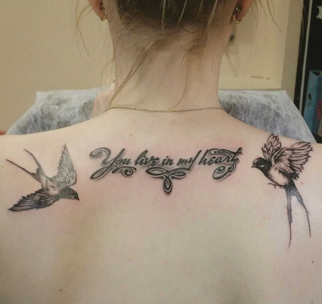 Область между лопатками считается энергетическим центром, где концентрируется мужское эго, амбиции и потребности. Если на лопатке набита ласточка, мужчина стремится к свободе, полету души, независимости от людей, обстоятельств и материальных благ.