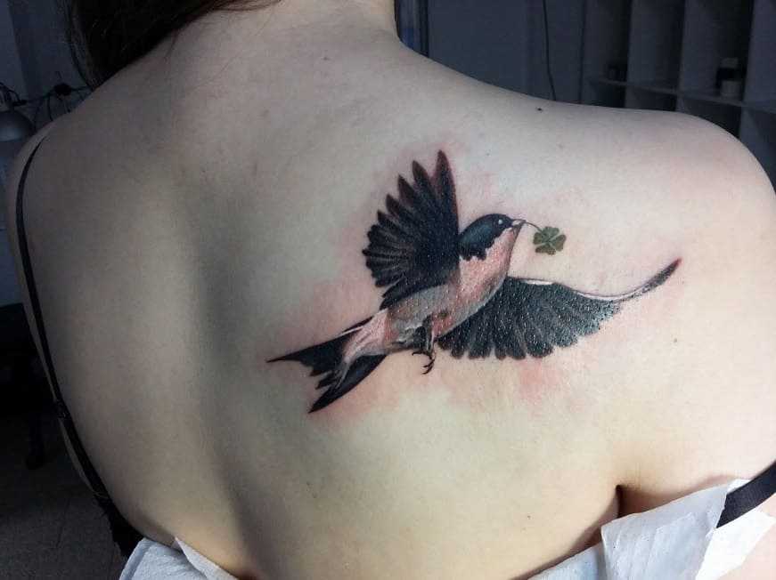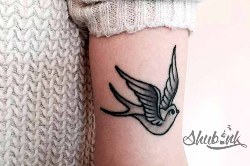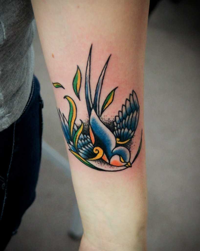 Татуировка с ласточкой обычно наносится на кожу женщинами, однако ее могут набивать и парни, включая в состав крупного тату. В прошлом воины верили, что эти птицы доставляют души тех, кто погиб, до небес. В течение множества столетий в европейской культуре ласточка продолжала символизировать добро. Данное значение дошло и до нашего времени.
