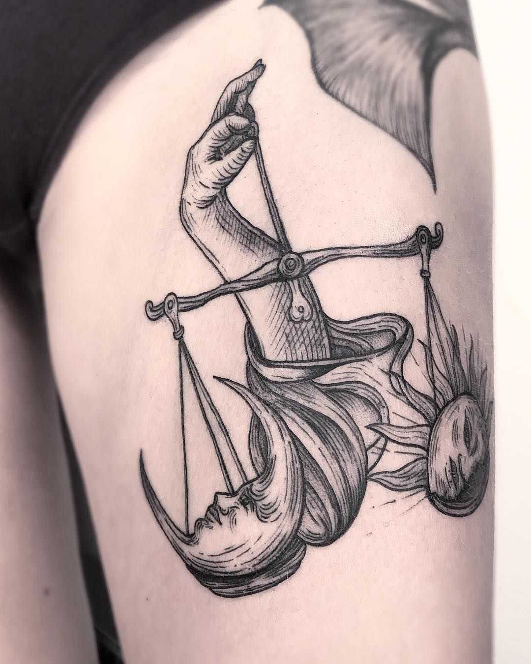Знак зодиака Весы представляет собой ничто иное, как одноимённый предмет, который определяет весомую характеристику вещей, и на первый взгляд не отличается чем-то особенным. Однако обратившись в тату-салон, вы будете приятно удивлены количеству вариаций и примеров оформления подобного рисунка. Татуировка может быть оформлена в виде самих весов, названия знака на латыни, созвездия, планеты спутника или письменного символа – глифа. Каждый из примеров красиво смотрится на теле как самостоятельное украшение, может дополняться разными деталями или совмещать в одном эскизе сразу несколько символов.