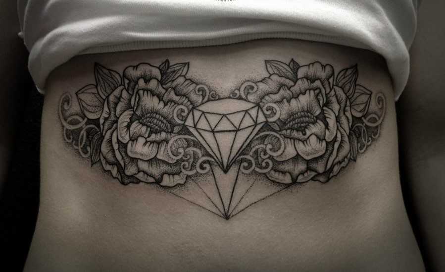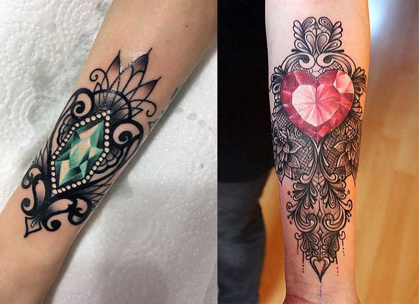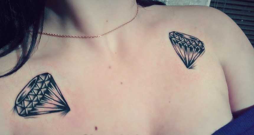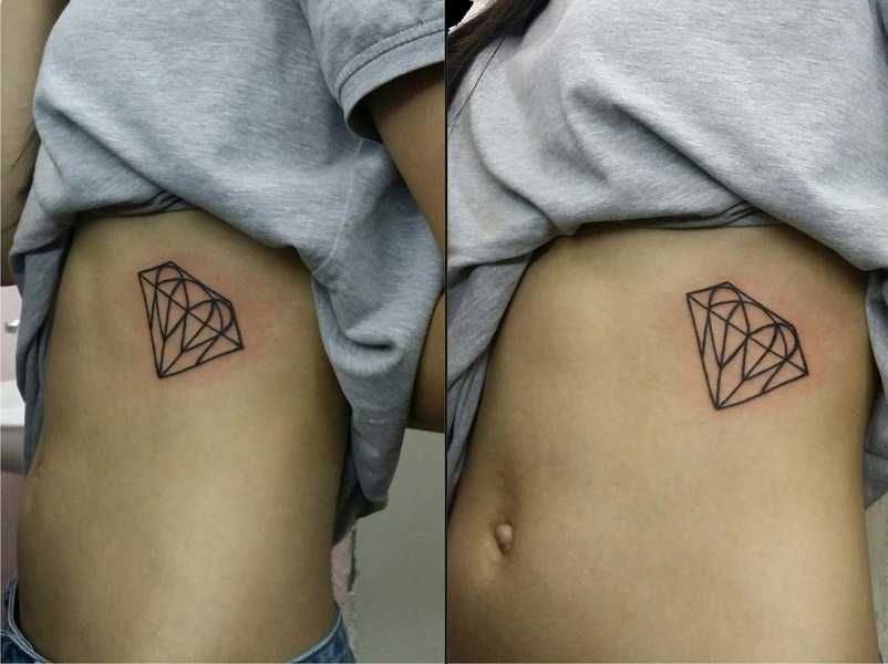 - Реализм – идеальный вариант для данной татуировки, так как алмаз имеет привлекательный внешний вид и станет настоящим украшением на теле девушки.