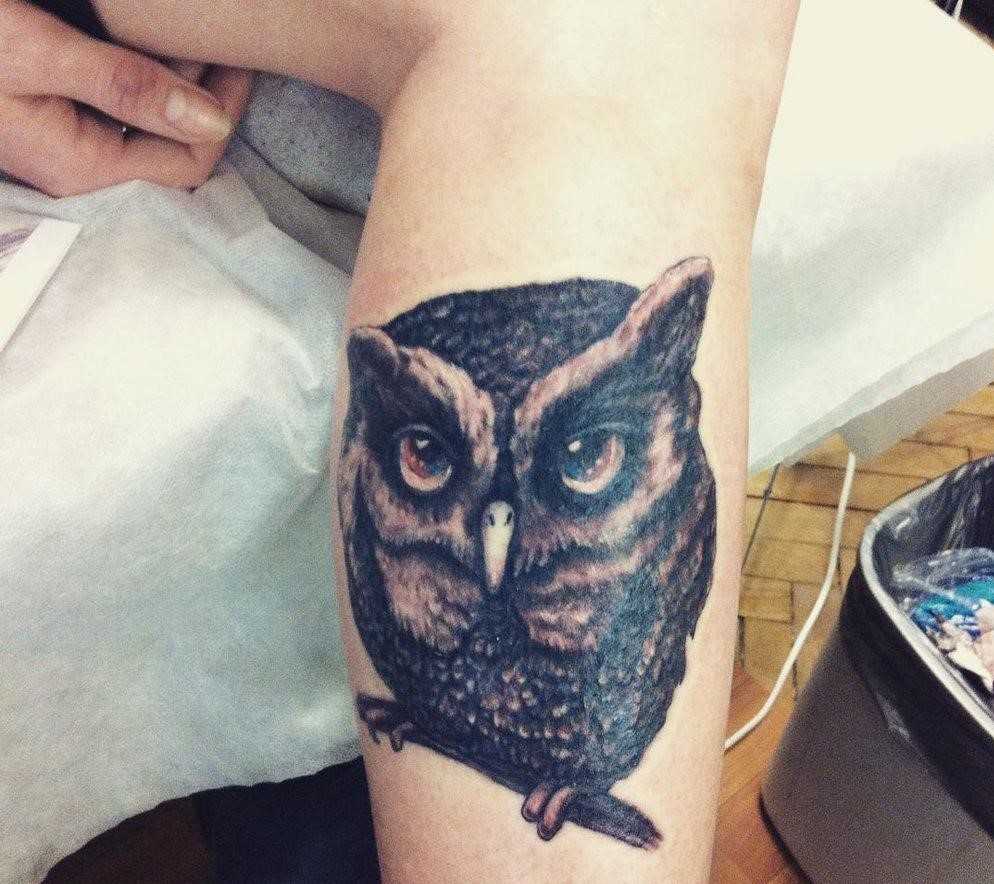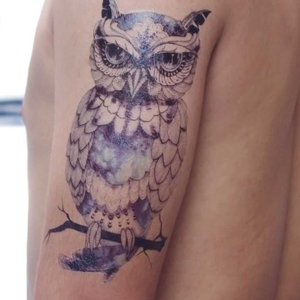 При выборе эскиза важно выбрать стиль и цветовую гамму будущей татуировки. Оригинально смотрится цветной филин в стиле реализм, ведь птица будет выглядеть насыщено и ярко, привлечет своей детализацией и натуральностью