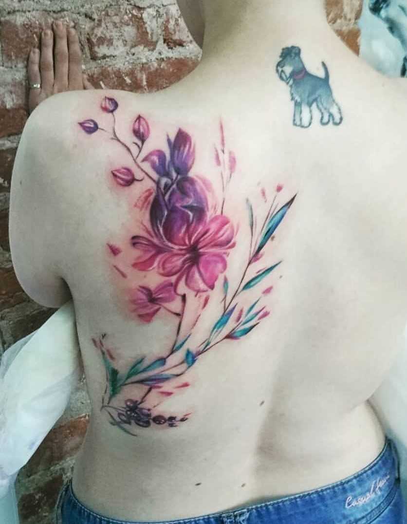 - Акварель – оригинальный стиль, позволяющий создать татуировку, словно она нарисована красками. При набивке тату используются подтеки, визуально создающие реальность картины.