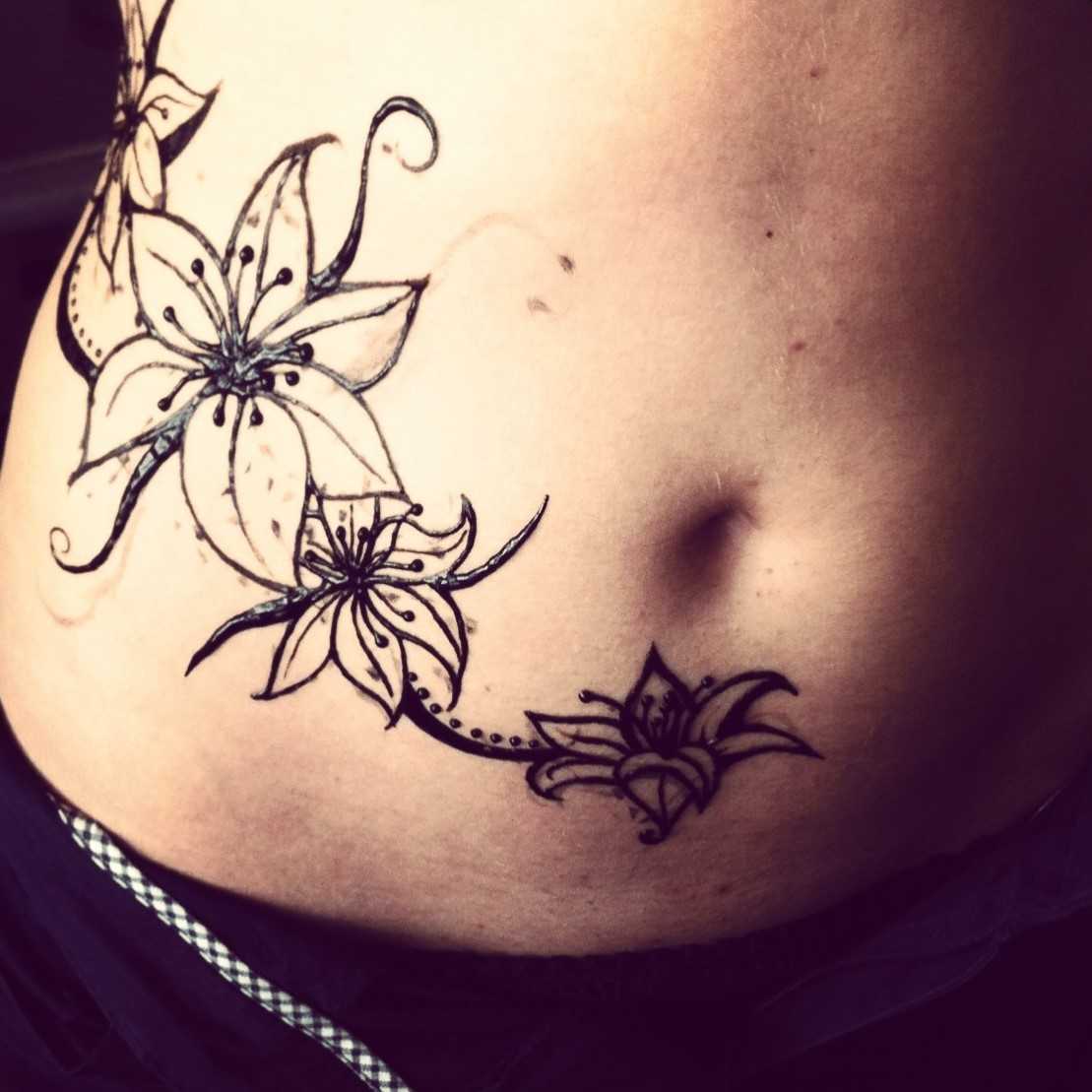 Очень изыскано и сексуально смотрится тату розовой лилии на боку у девушки, говоря о ее нежности, юности и ранимости. Однако прежде, чем сделать татуировку именно в этом месте, следует знать, что если вы наберете или, наоборот, потеряете в весе, изображение может измениться, и не будет уже выглядеть как раньше.