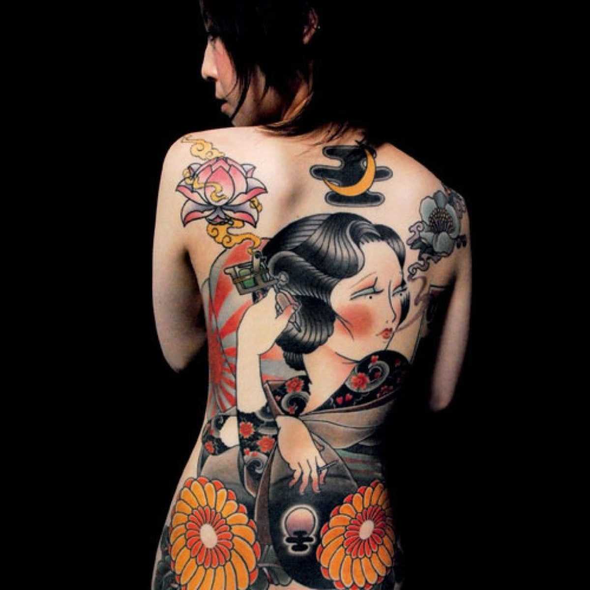 В Японии татуировки одинаково часто используются, как мужчинами, так и девушками. При этом девушки с помощью нательных рисунков демонстрируют свою покорность, хрупкость, нежность, женственность и красоту. Классические эскизы японских татуировок для девушек – это различные цветочные мотивы, например, лотос – символ непорочности, духовной загадочности и богатства, пионы – красота и успех в делах. Однако, истинным лидером японских татуировок для девушек является сакура – древний образ, символизирующий жизнь и глубокий философский смысл, олицетворяет женскую мудрость. Еще один вариант тату для девушек – японский сад, изображенный на спине, который олицетворяет оригинальность и харизму своей владелицы.