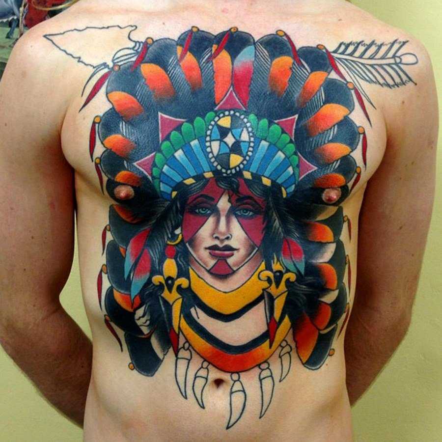 В целом татуировка с изображением индейца больше пользовалась спросом среди мужчин, так как образ вождя делал представителя сильного пола более мужественным, ярким и уверенным в себе. Что касается цветовой гаммы, то она никак не влияет на значение и выбор палитры зависит лишь от владельца наколки. В целом принято использовать яркие и красочные образы индейцев, привлекающие своей красотой и оригинальностью.