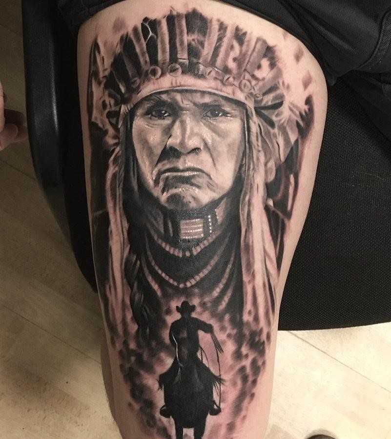 Тату индеец – это символ силы и храбрости, изображенный на теле вождь может стать оберегом и талисманом, как в работе, так и любви. Выбирая эскизы обычно отдают предпочтение картинам, расположенным на спине, так как благодаря большим размерам можно передать все величие индейцев.