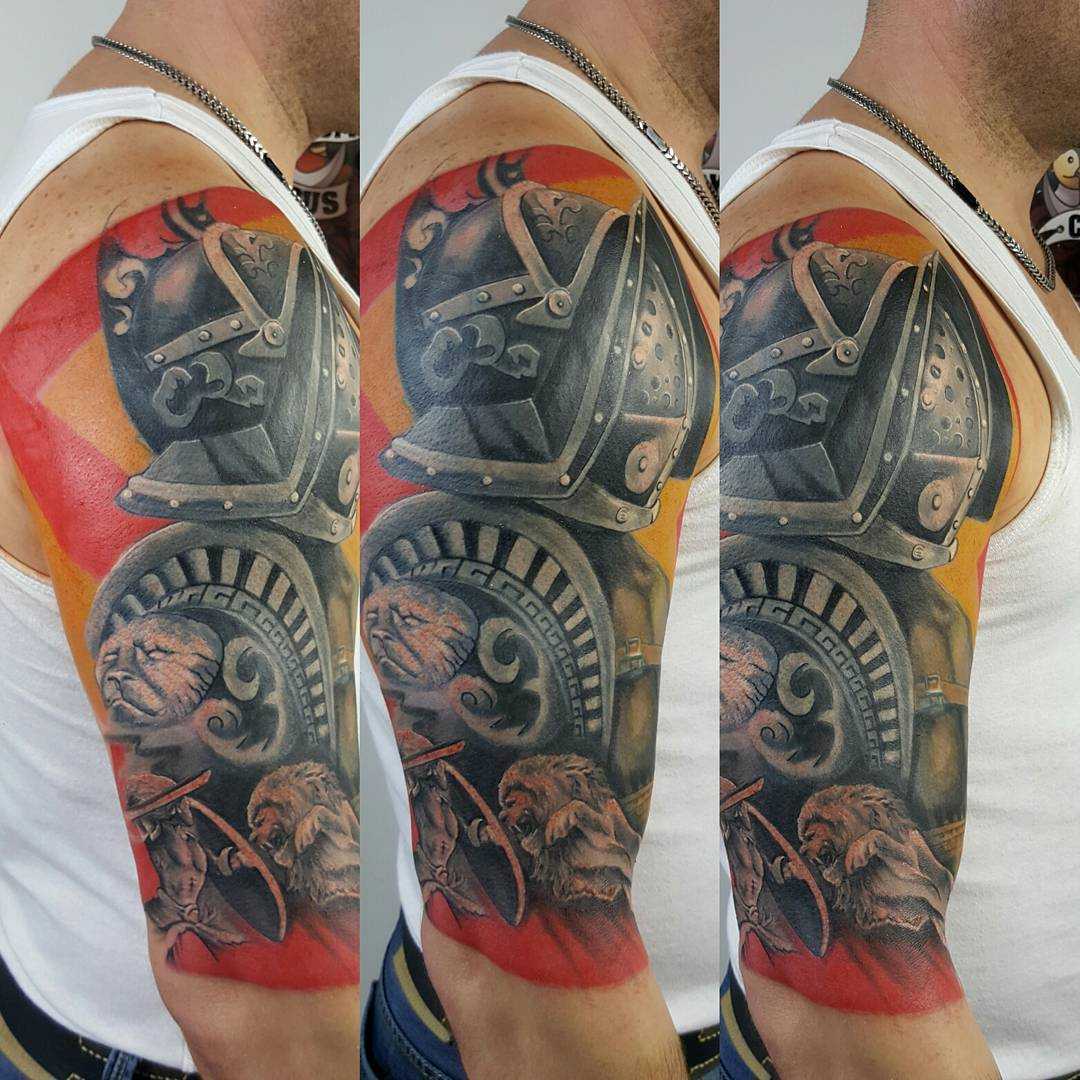 Также существуют эскизы татуировок, в которых мужчины выбирают не полноценный облик гладиатора, а изображают лишь некоторые отдельные элементы, например, шлем или латы. В этом случае татуировки изменяют свое значение и могут символизировать следующее: