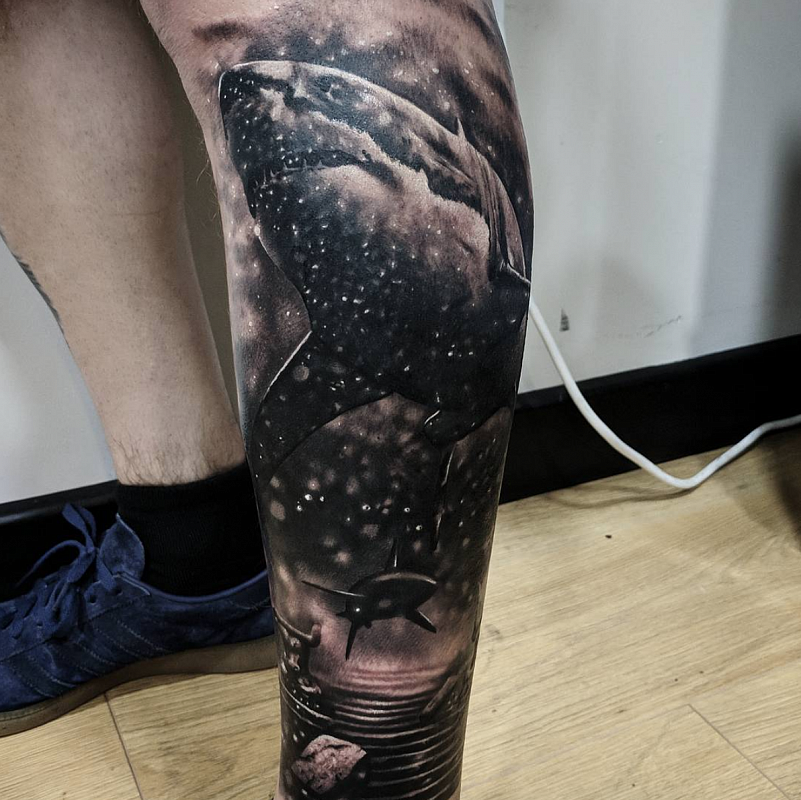 Когда эскиз татуировки уже подобран и согласован с мастером, каждый любитель боди-арта сталкивается с актуальным вопросом – на каком именно участке тела расположить выбранный рисунок? Для тату с акулой, в этом случае, нет никаких ограничений, ведь символика эскиза не меняется в зависимости от места его расположения. Учитывается только ваше личное желание открыто демонстрировать татуировку, или, наоборот, по возможности скрывать её от посторонних глаз. Наиболее распространёнными участками тела считаются плечо, предплечье, запястье или кисть. Мужчины при этом наносят акулу в области бицепса, что позволяет одновременно подчеркнуть рельефность мышц и продемонстрировать свои сильные черты характера. Также очень оригинально смотрится изображение рыбы в районе икроножных мышц или бедра, на боку, груди либо на животе. Смельчаки нередко набивают эскиз на шее или даже затылке, бросая тем самым некий вызов обществу и общепринятым правилам.