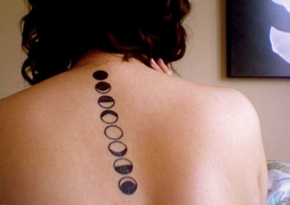 Среди поклонников астрономических циклов луны много тех, кто набивает полный набор смены лунных фаз. Рисунок может быть как схематичным, так и отражать фото луны в разных стадиях. Тату обозначает перерождение и обновление.