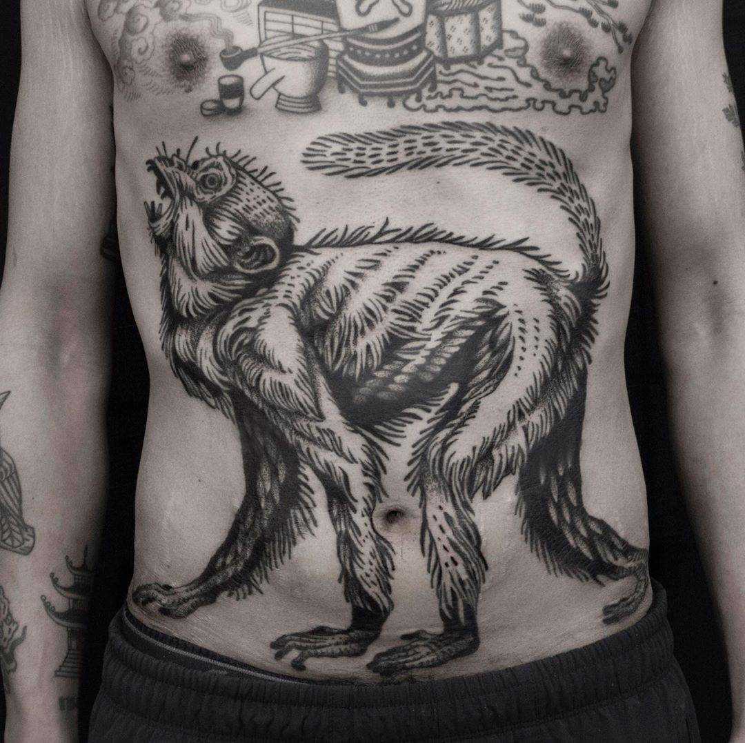 - Гравюра. Соединяет простые линии и глубокие цельные изображения. Каждый подобный эскиз напоминает имитацию гравировки по дереву, металлу или воску. Сюжеты для таких тату заимствуются из средневековых легенд. Используются только черный и серые тона. Чаще всего наносится на плечо или предплечье.