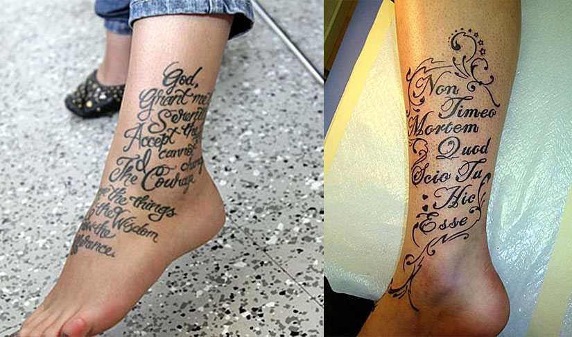 Вместо картинок вы можете попробовать надписи на щиколотке, которые сочетают в себе тайну и глубокий смысл: