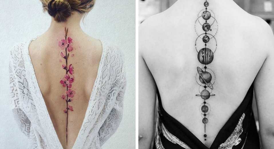 На позвоночнике девушки набивают в основном надписи. Это одно из эротичных мест женского тела. Позвонки находятся практически сразу же под кожей, процесс нанесения станет болезненным.