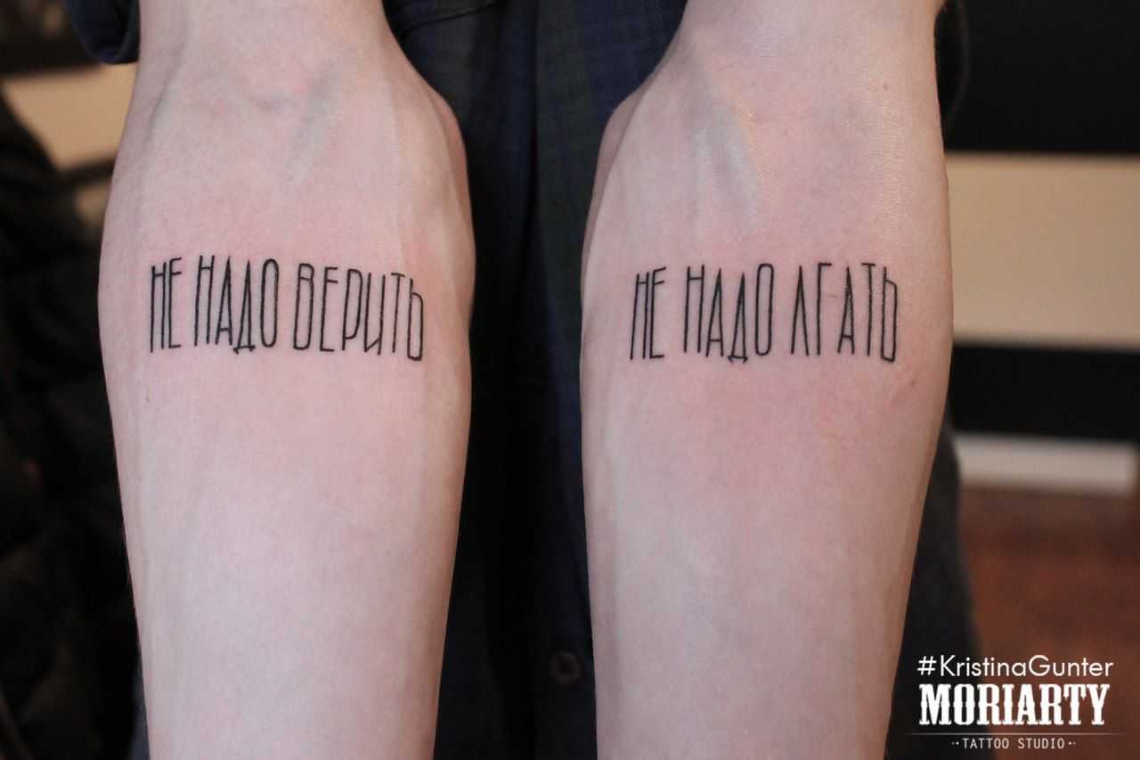 Найти тату надписи со смыслом и переводом на просторах интернета достаточно просто. Намного сложнее выбрать подходящую для себя, не банальную и с правильным переводом. Мы постарались отобрать лучшие фразы для татуировок по этим критериям.