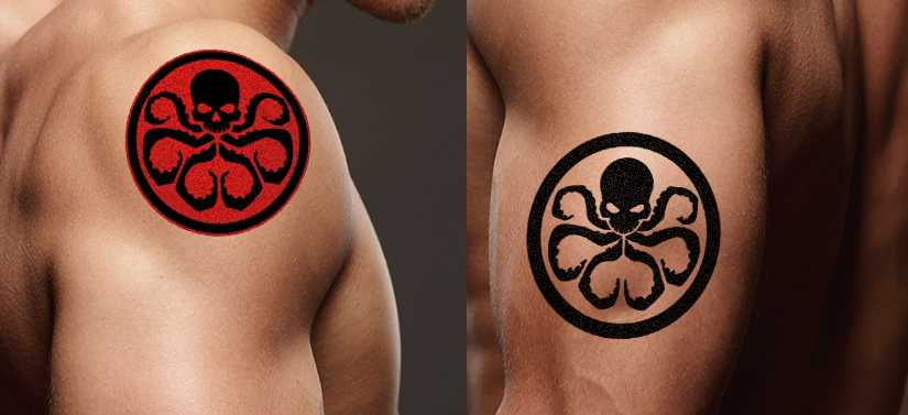 Наколка щупальца спрута и череп секретной террористической организации «Гидра»