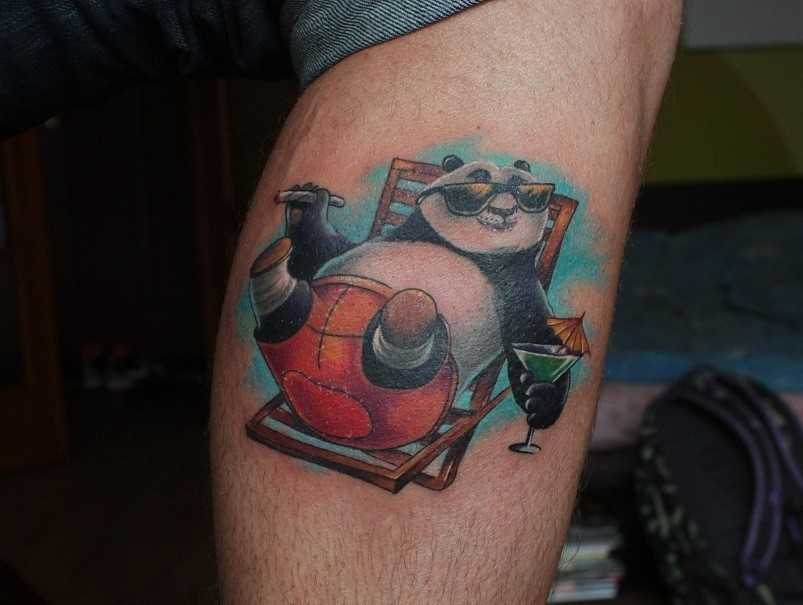 Эффектное нательное изображение с пандой расскажет про веселый и добрый нрав своего обладателя.