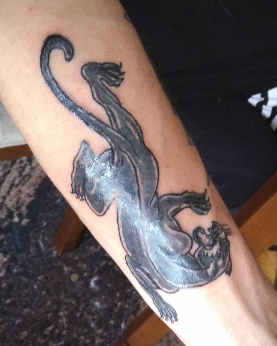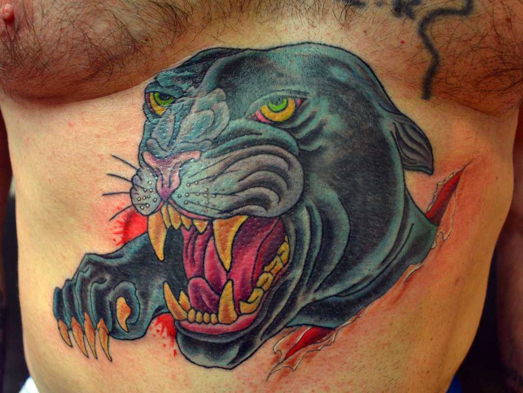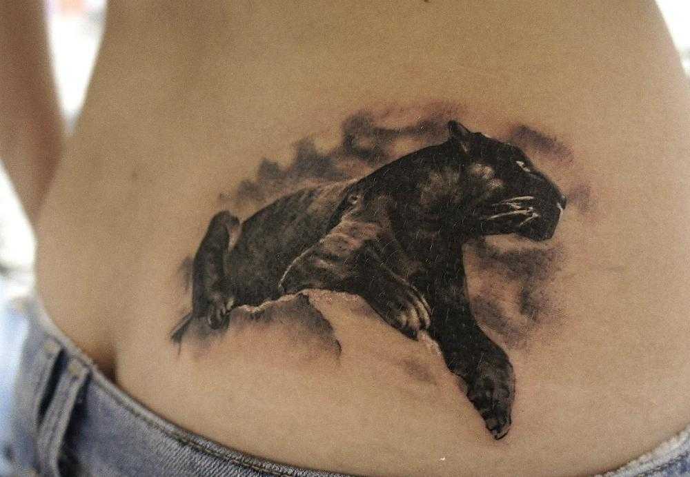 Пантера, которая находится в прыжке – символ мятежной и сверхъестественной силы, агрессии, многие считают, что такая татуировка имеет магические способности. Такое тату для девушки будет иметь следующие значение: нежность, красота, бесконечная любовь и преданность к семье, материнский инстинкт (женщина готова умереть за своих детей).