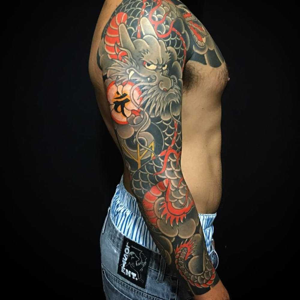 Перед тем, как выбрать эскиз будущей татуировки нужно определить тип изображения и вид татуировки. Стоит помнить, что все рисунки имеют конкретное значение и логическое объяснение, уходящее глубоко в историю. Японские татуировки отличаются высокой художественностью и красотой, поэтому скрывают за собой большую смысловую нагрузку. Если для создания наколки используется большой эскиз, то необходимо задействовать все участки тела, при этом все образовавшиеся пустоты заполняют надписями, орнаментом и другими символами, дополняющими мистический внешний вид огромной композиции.