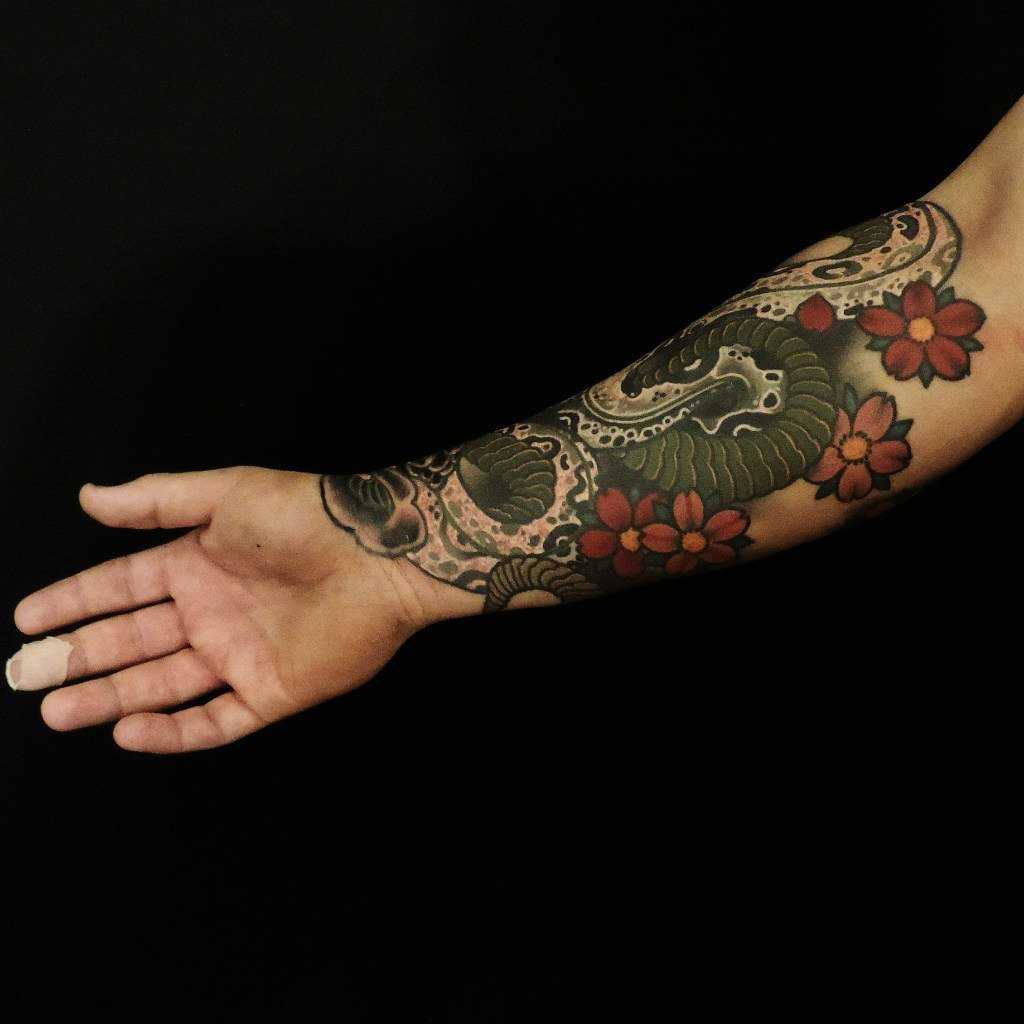 Следующий сеанс назначают не раньше чем через 10 дней. От того, как пройдет период заживления, будет зависеть четкость линий, красота рисунка. Наколка тату рукава считается относительно безболезненной процедурой. Предплечье, плечо, промежуток от локтя до кисти — имеют более низкий болевой порог, чем ноги, живот или шея.