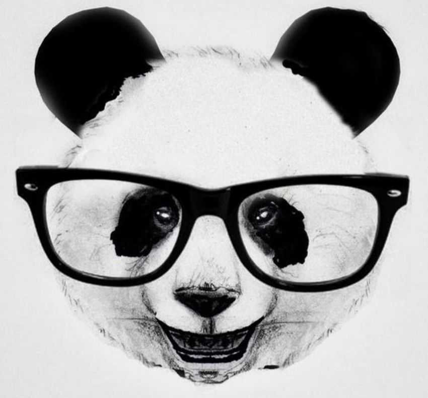 - Голова панды, которая изображается в виде роботизированной модели, черепа и т.д.