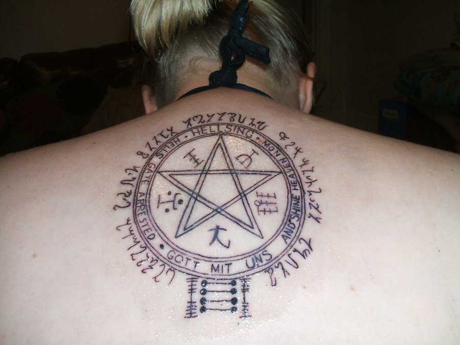 В данном случае выбор мастера очень важен. Специалист должен разбираться в религиозной и оккультной символике, значениях рун и даже в современных сериалах. Ведь тату защиты пентаграмма легко превратить в знак дьявола и темных сил. Эта татуировка энергетически очень сильная, поэтому перекрывать неправильно нарисованную пентаграмму другим рисунком не рекомендуется. Нужно предварительно полностью удалить неудачную татуировку и лишь затем наносить новое нательное изображение.