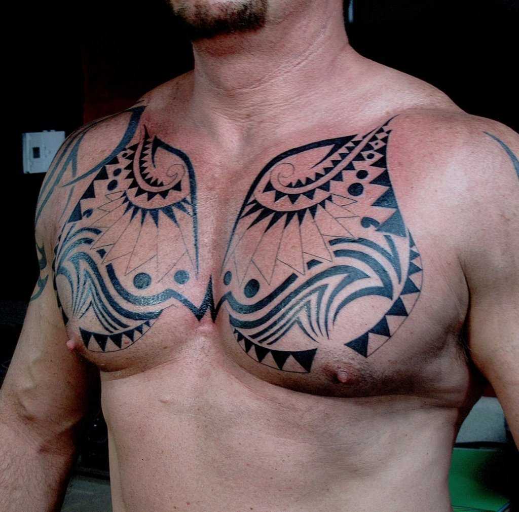 Одна из самых крутых татуировок на груди у мужчин – это рисунок, выполненный в племенном стиле. Каждый из них имеет свои уникальные и мощные конструкции, которые могут придать мышцам еще более привлекательный внешний вид.