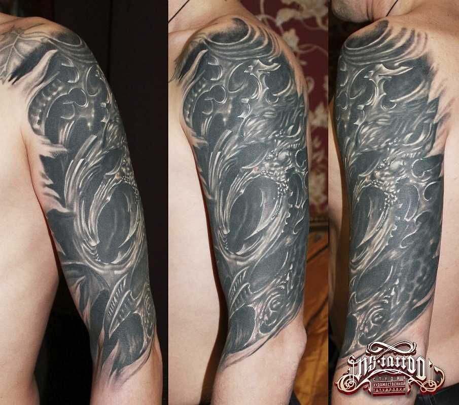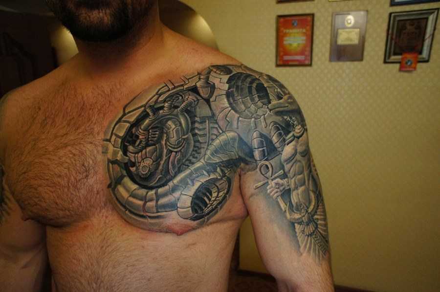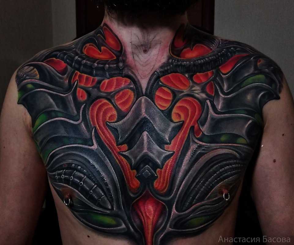 Татуировка, выполненная в стиле биомеханики – это яркий и оригинальный вариант нательного изображения. Но поскольку это объемные и немного даже агрессивные изображения, то такую татуировку выбирают осознано, продумав каждую деталь рисунка. Только тогда можно получить в целом красивое и органичное изображение на своем теле, которое по достоинству оценят окружающие.