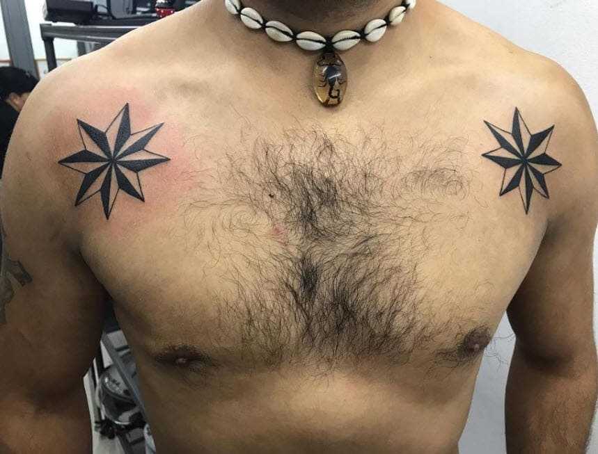 «Воровская звезда», как правило, является парной татуировкой. Две одинаковые фигуры располагаются на теле симметрично. Так звезды попарно изображаются на плечах, под ключицей или на коленях.