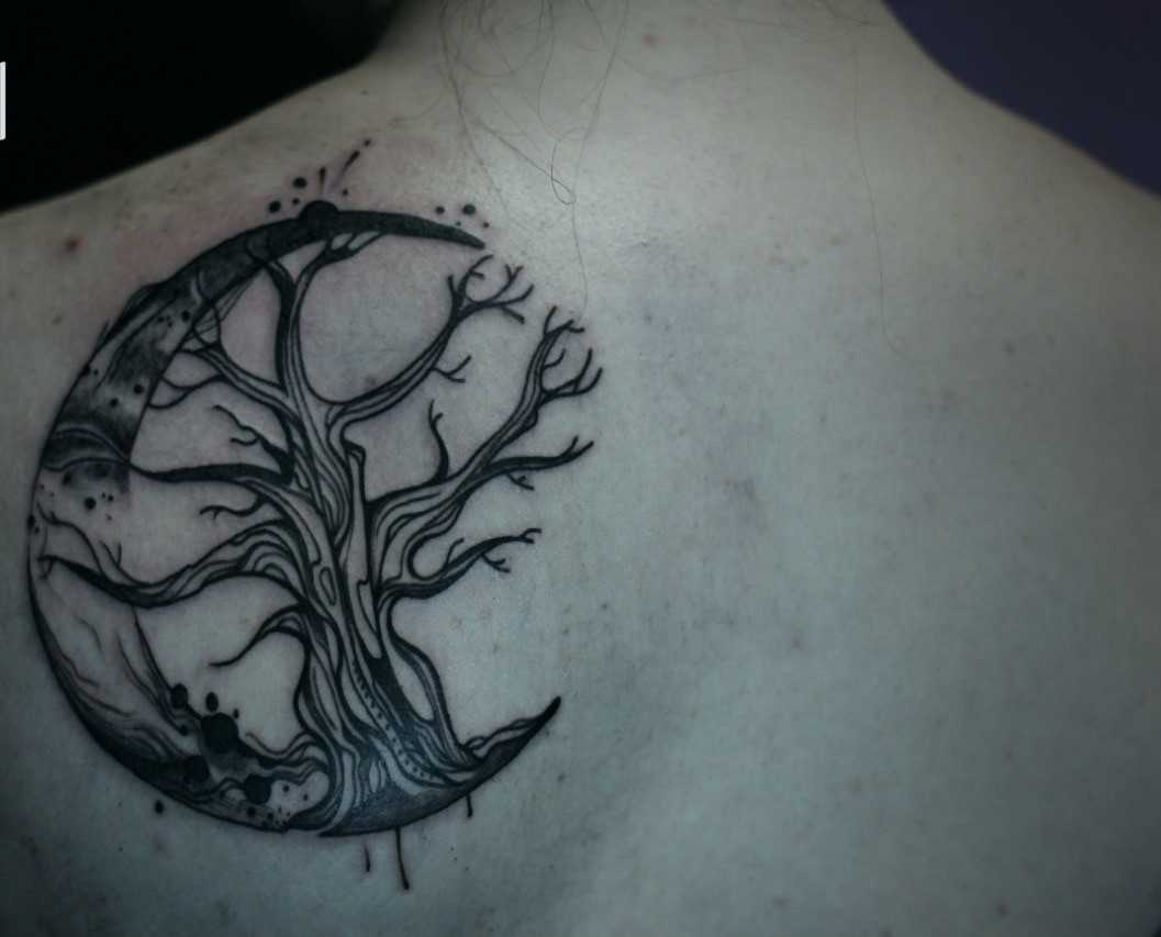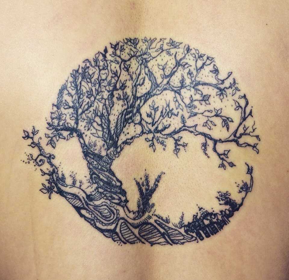 - Дерево жизни – знак мудрости, защиты, вечности и бессмертия. Стоит отметить, что наколка должна иметь все составляющие дерева, которые нужно максимально точно и качественно прорисовывать.